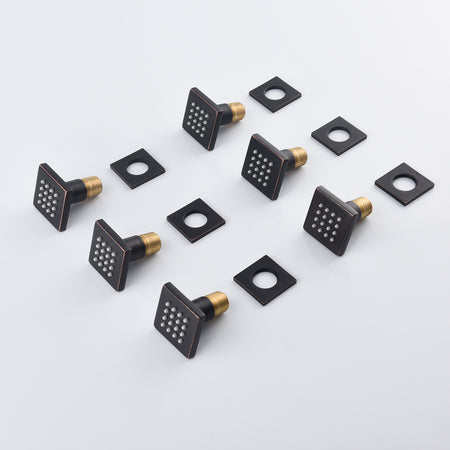 Body Jets: Our system includes 6 brass body jets, each measuring 2 inches. These jets provide a soothing and invigorating massage-like experience, enhancing your shower enjoyment.