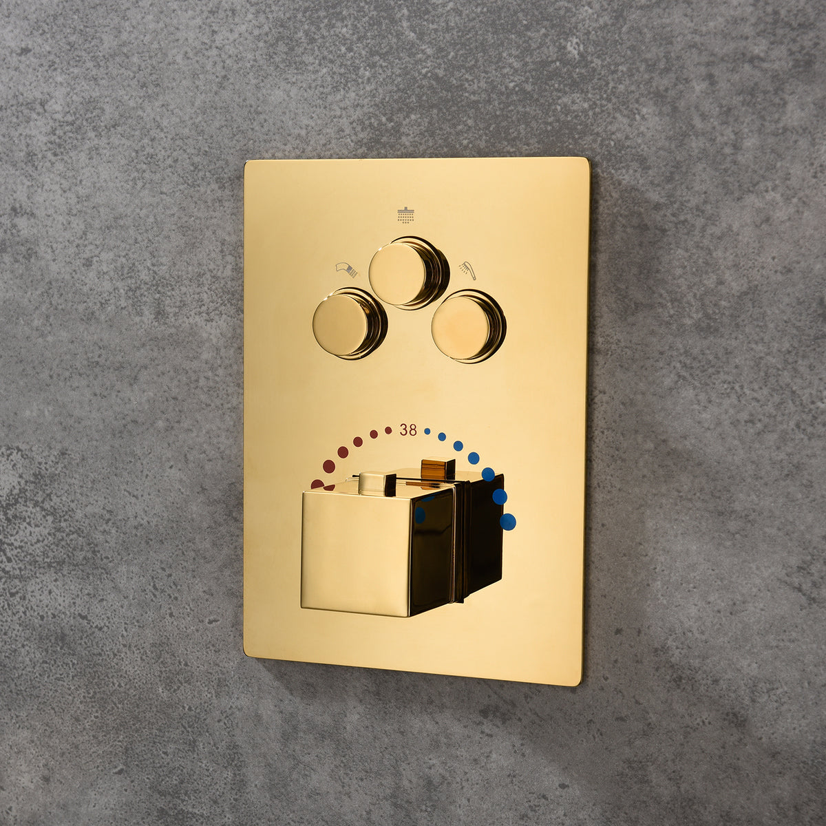 Bring home the Polished Gold 3-Way Thermostatic Shower System for a touch of elegance and enjoy a spa-like experience every day. This shower system guarantees quality, durability, and a stunning aesthetic upgrade to your bathroom.