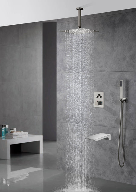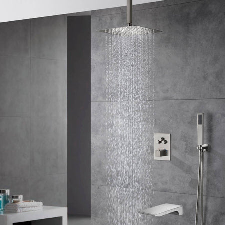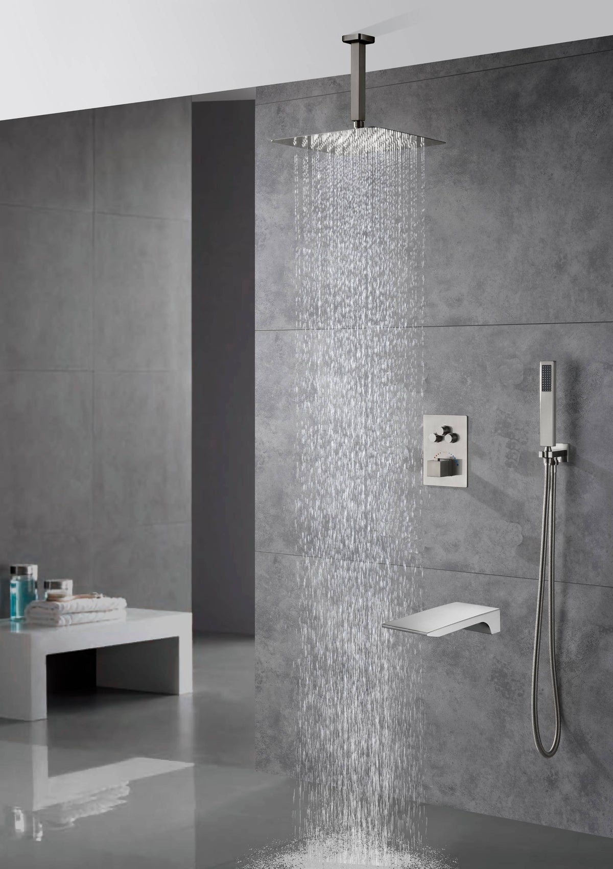 Brushed nickel Ceiling mount Brushed gold 3 way Thermostatic Shower valve system with tub spout that each function run all together and separately
