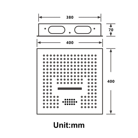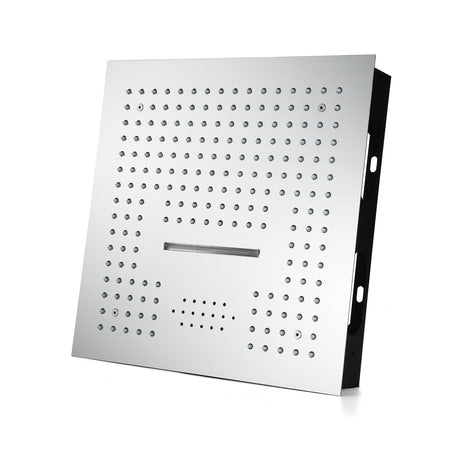 LED and Music Shower Head:Â The 16'' x 16'' stainless steel shower head features waterfall, rainfall, 64-color LED lights, and Bluetooth music functions. The LED lights and music can be controlled via a remote panel and your cell phone respectively, allowing you to tailor your shower experience.