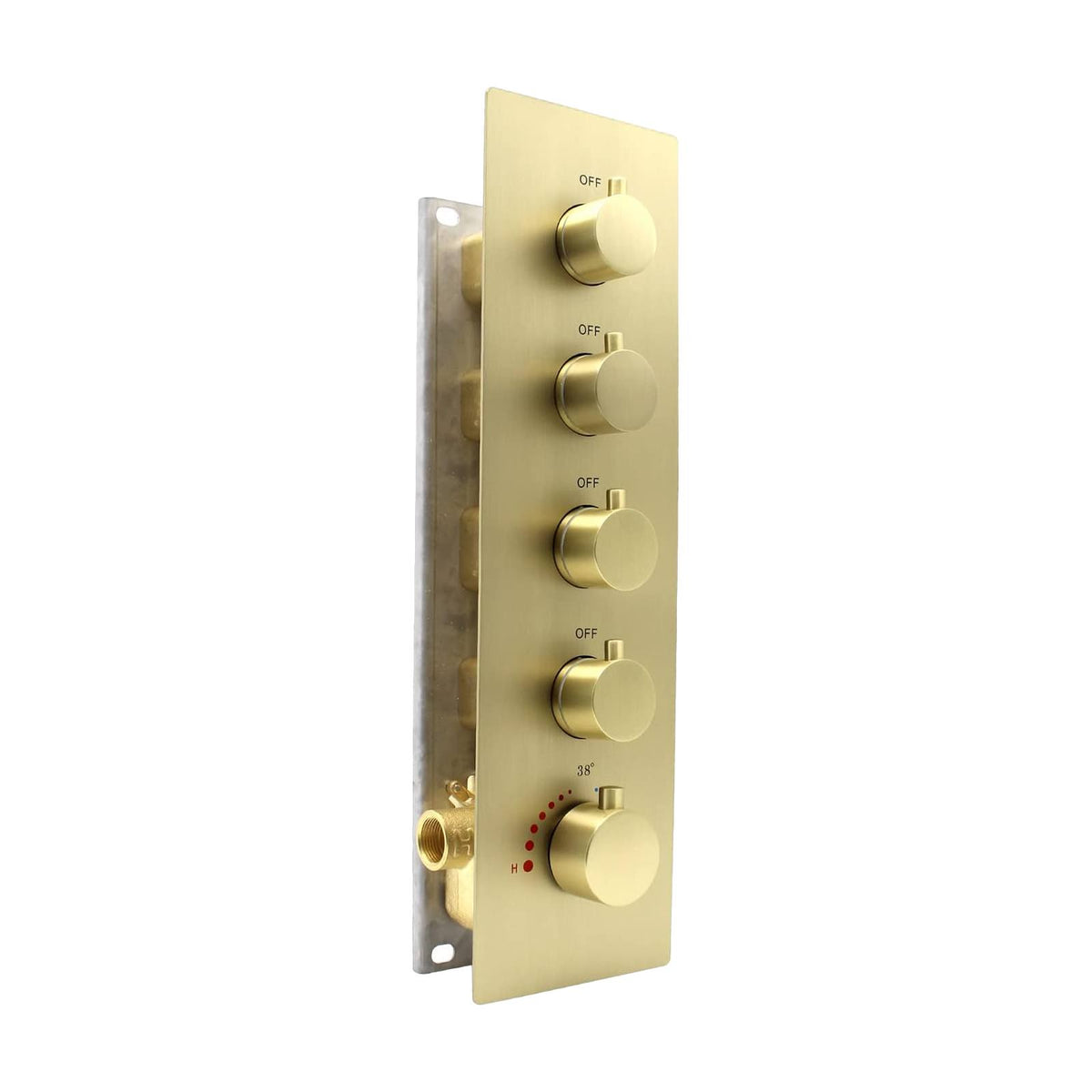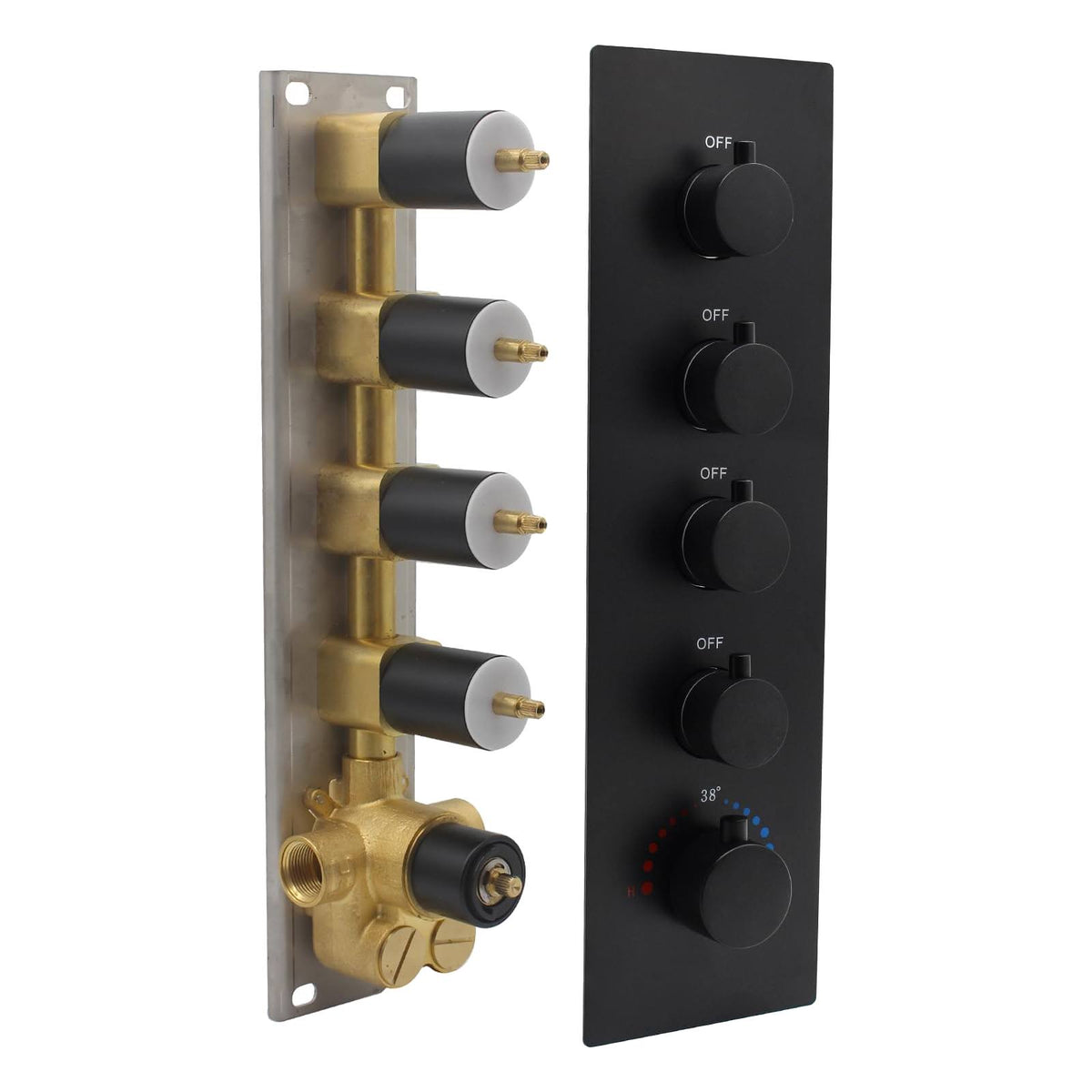 4 way thermostatic rough in valve with trim,5 finishing colors available
