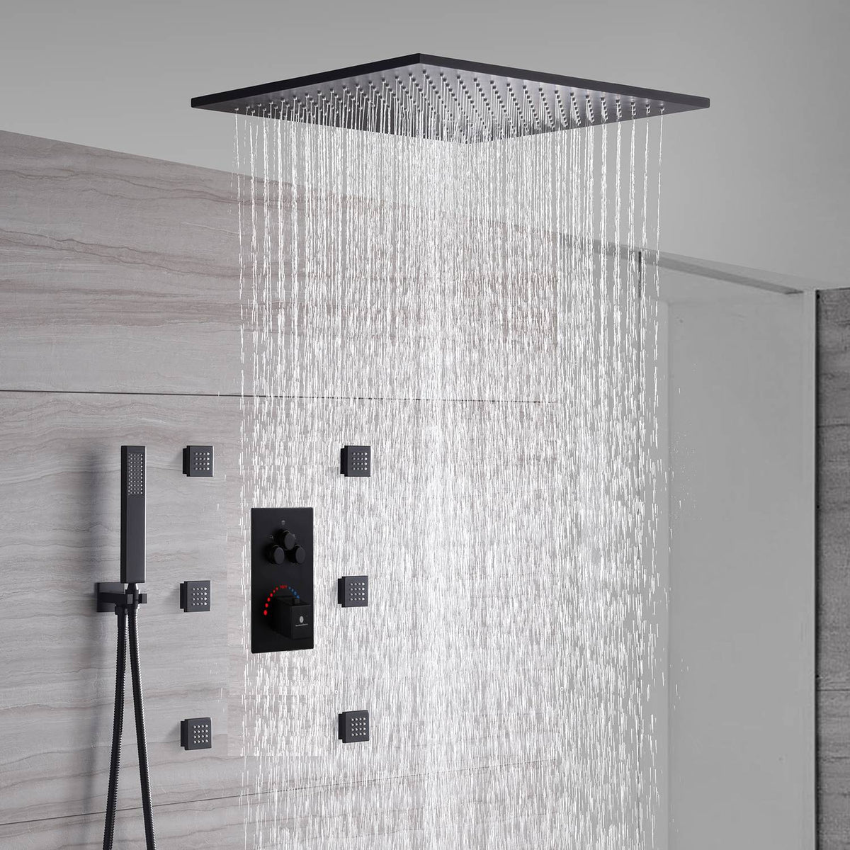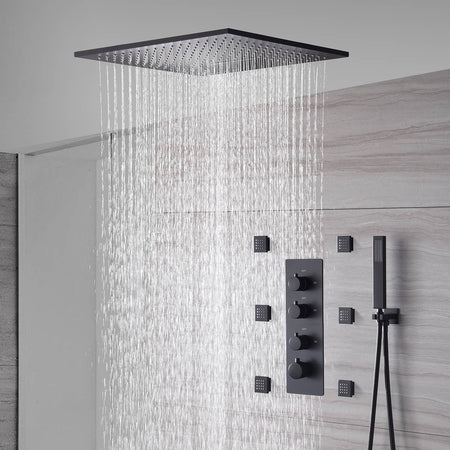 Matte Black 20" or 24" Ceiling-Mounted 3-Way Thermostatic Shower Faucet