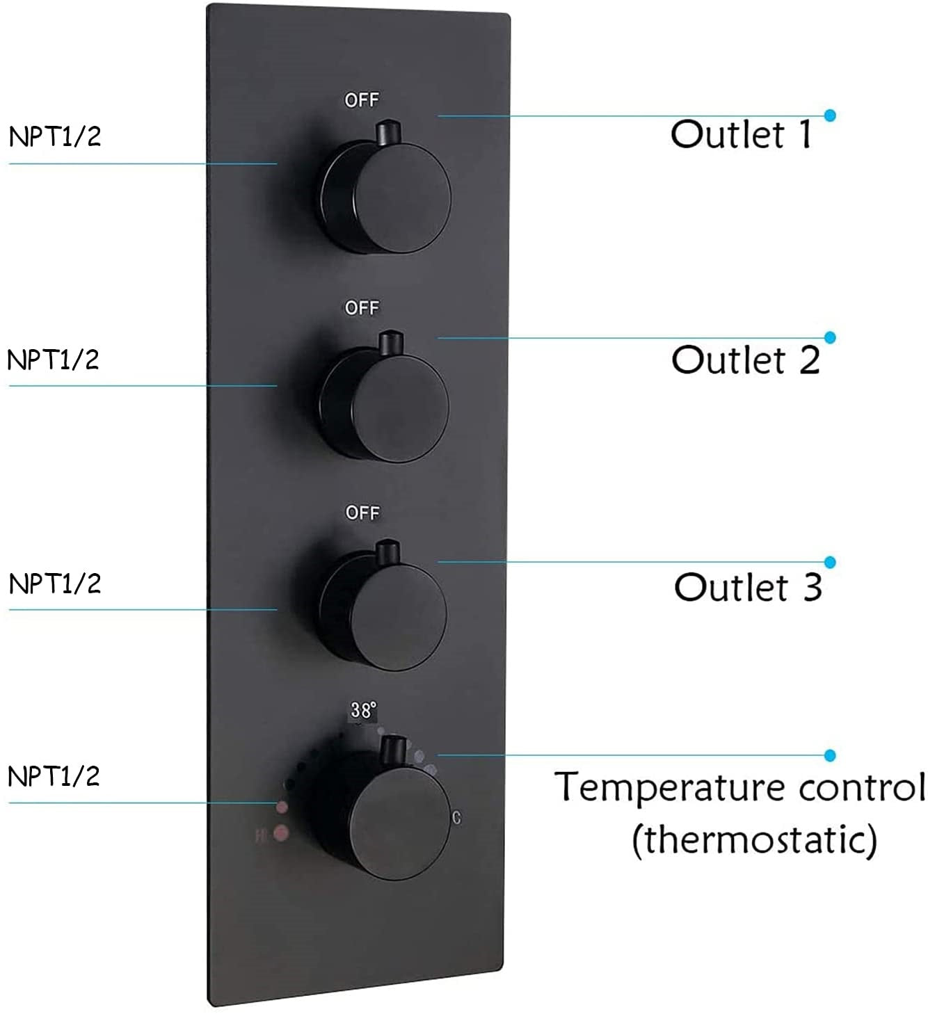3 way Thermostatic rough in valve with trim and each function work separately and all together