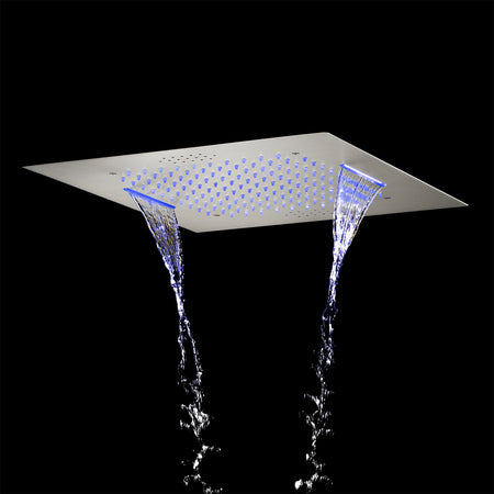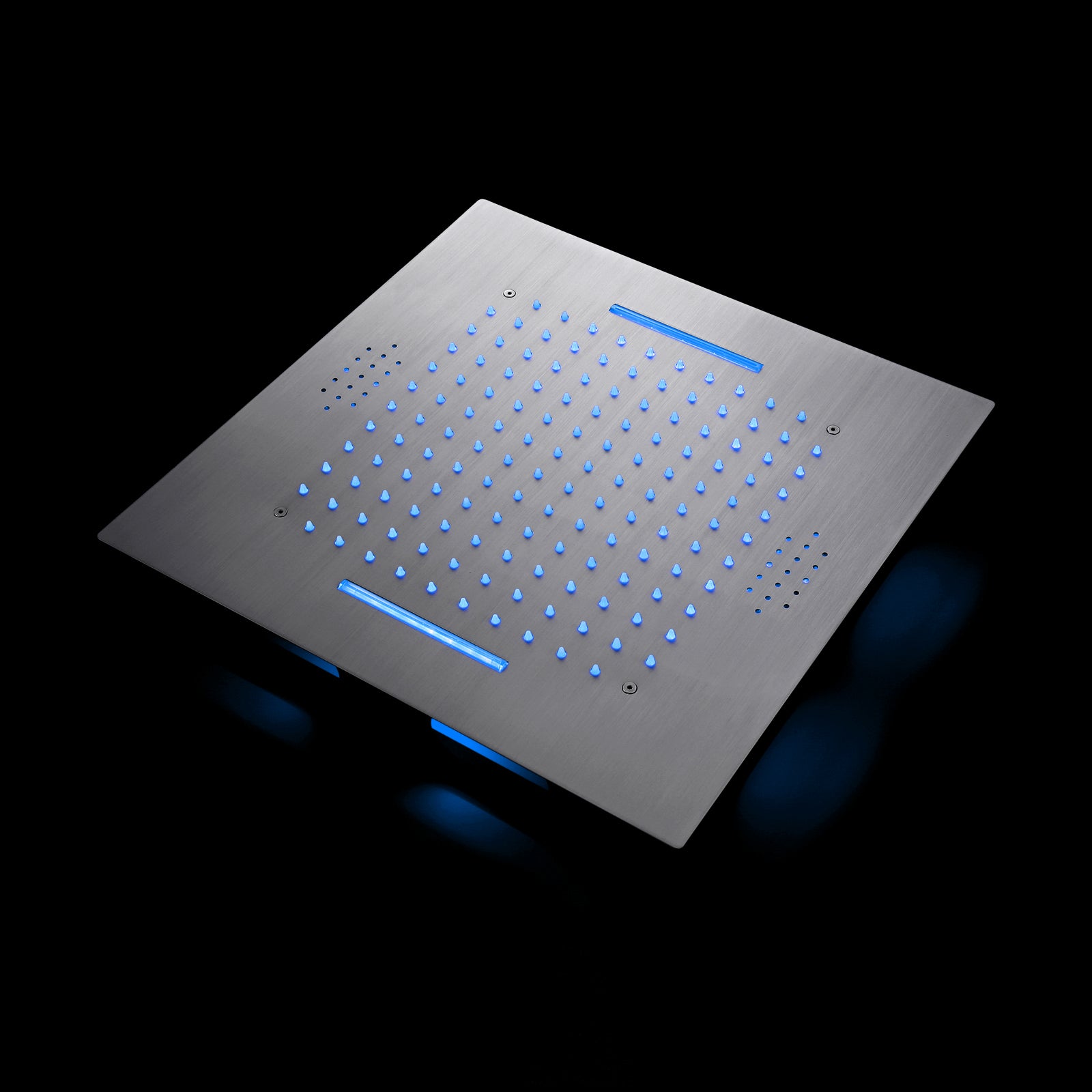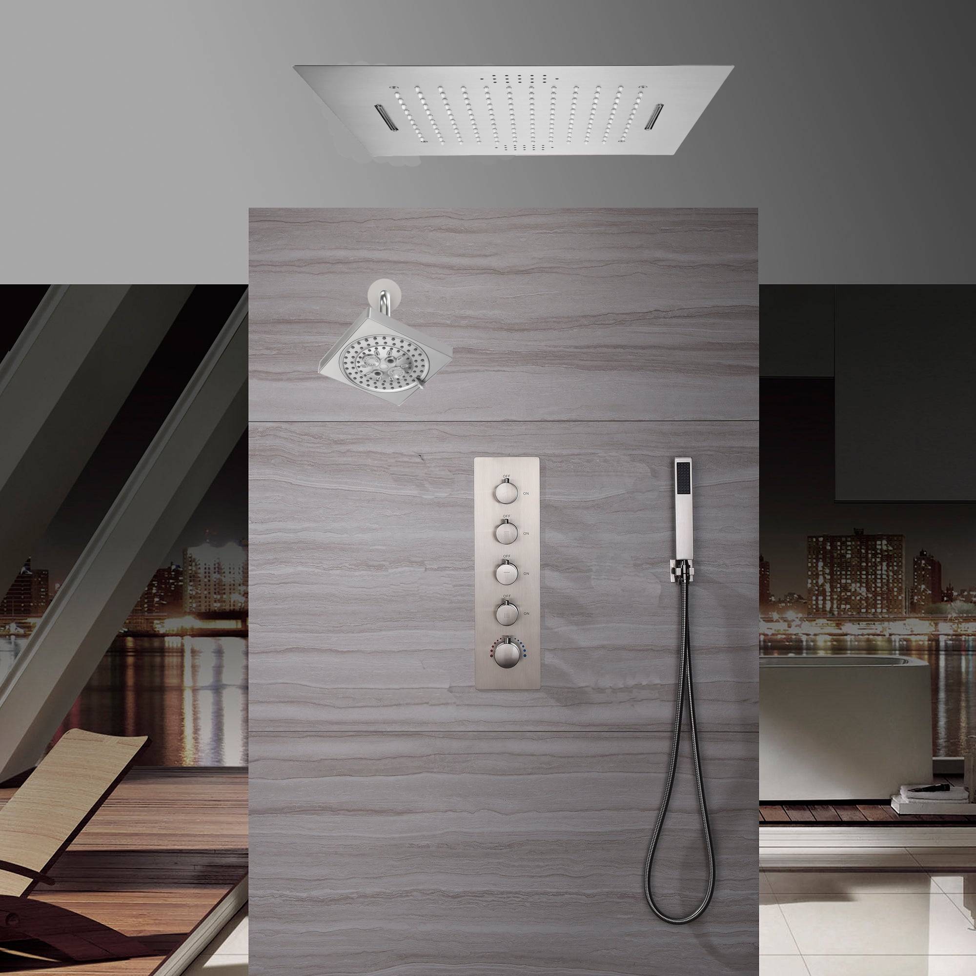 20-Inch Brushed Nickel Flush Mount 4 Way thermostatic Shower System with 64 LED Lights, Bluetooth Music, and Thermostatic Valve with Optional Digital Display