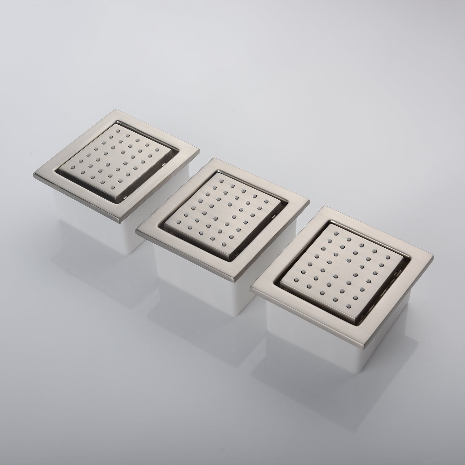 Body Jets: The adjustable, 4 x 4 inch body jets are flush-mounted to the tile wall for a seamless look.