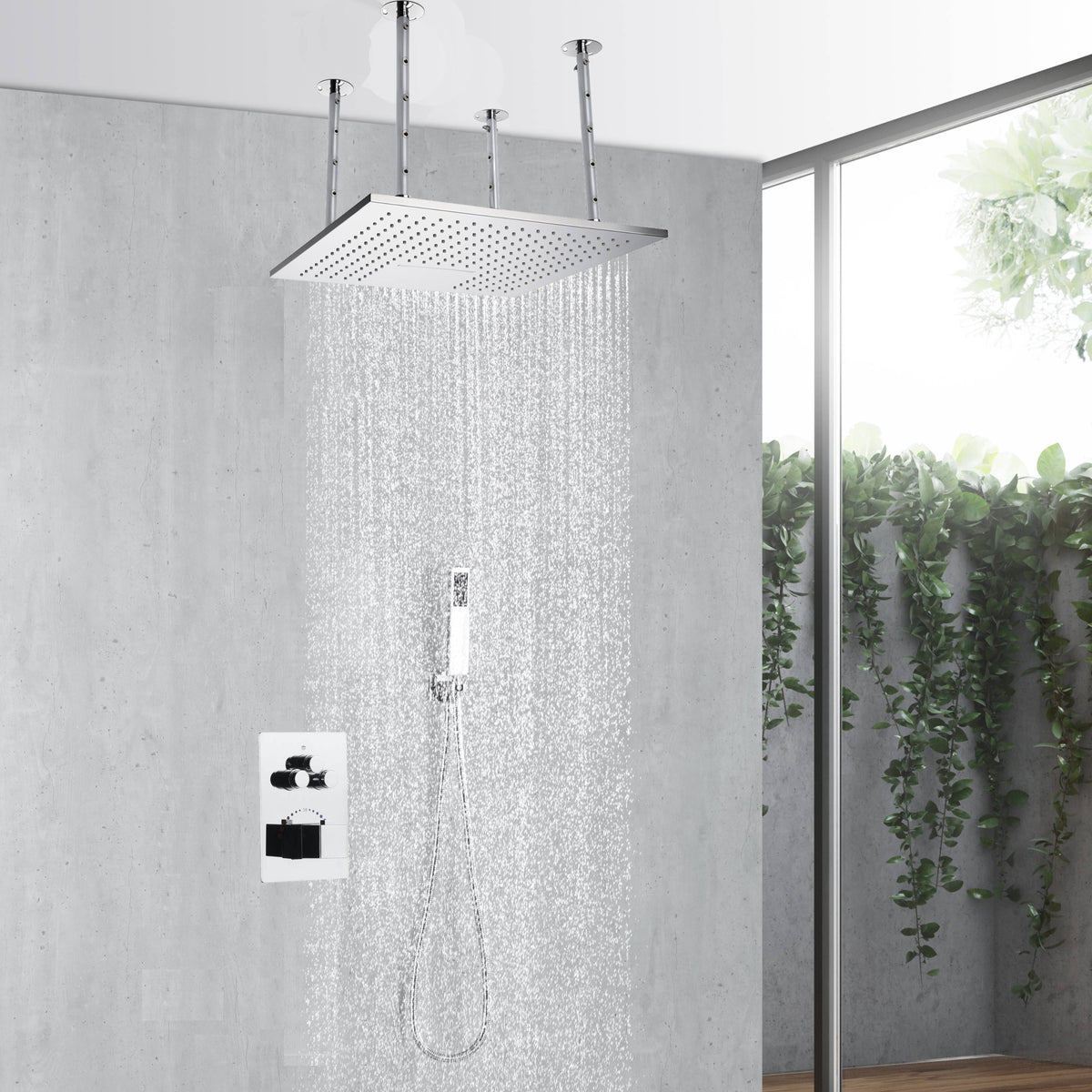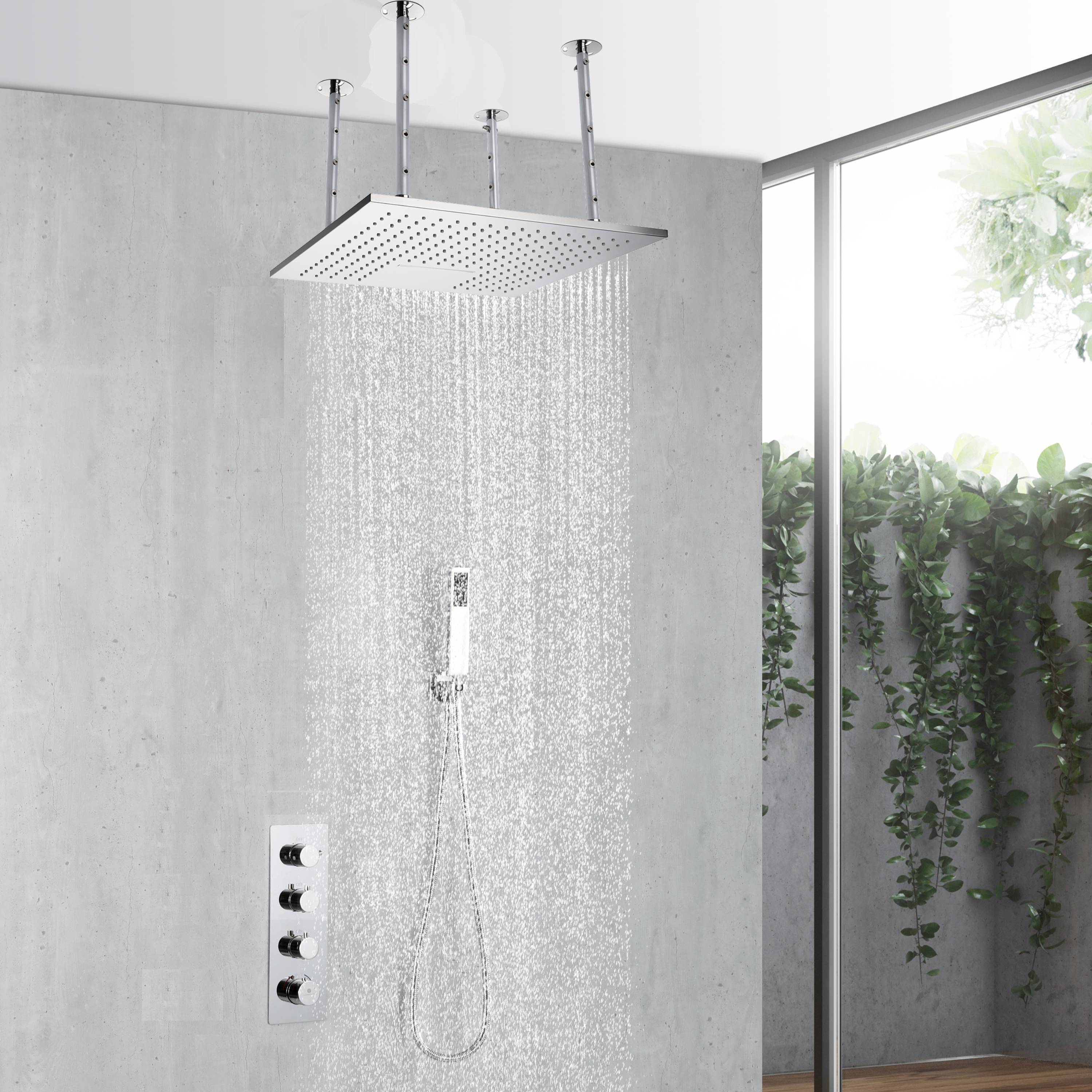 20inch flushed on chrome ceiling mount rainfall waterfall shower systems 3 way thermostatic Shower Faucet