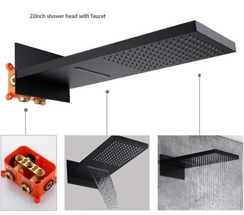 Shower Head with Faucet: This 22-inch shower head comes with a faucet for added functionality and convenience. The shower head and faucet combination is designed to provide a seamless and cohesive showering experience.
