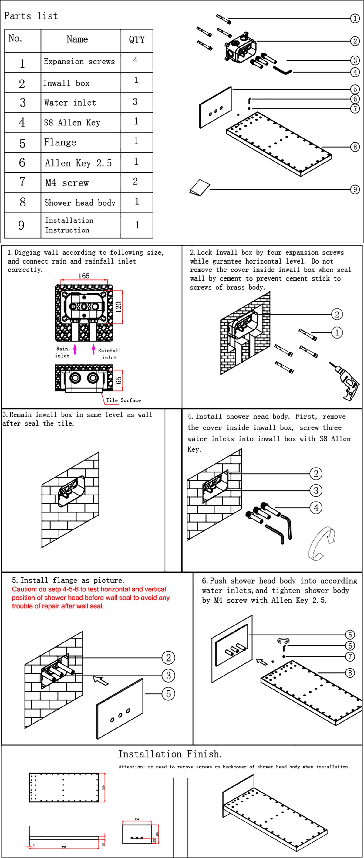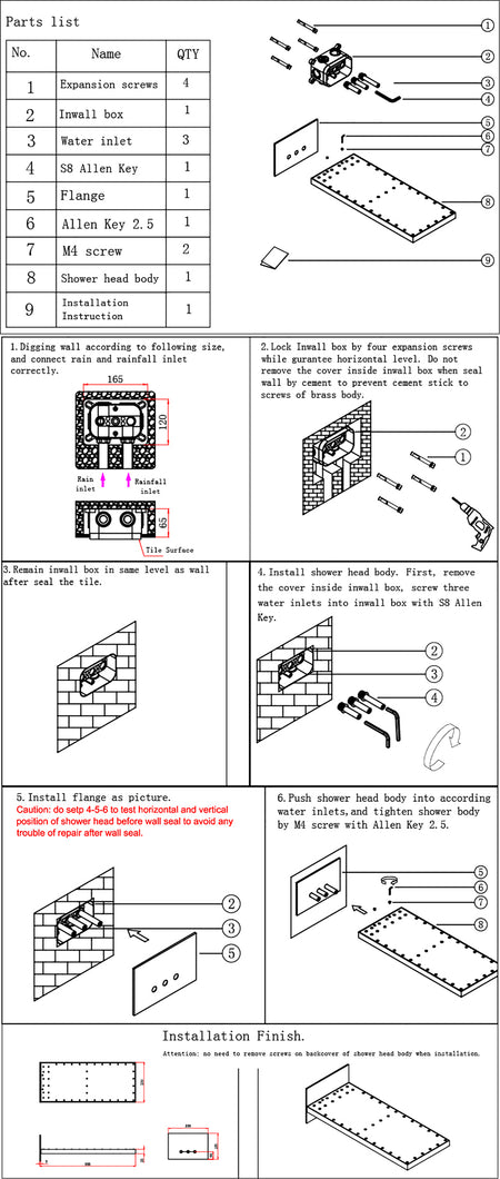 Working Pressure: The shower head is designed to function optimally within a working pressure range of 0.5 - 1.0 Mpa, ensuring a consistent and invigorating water flow.