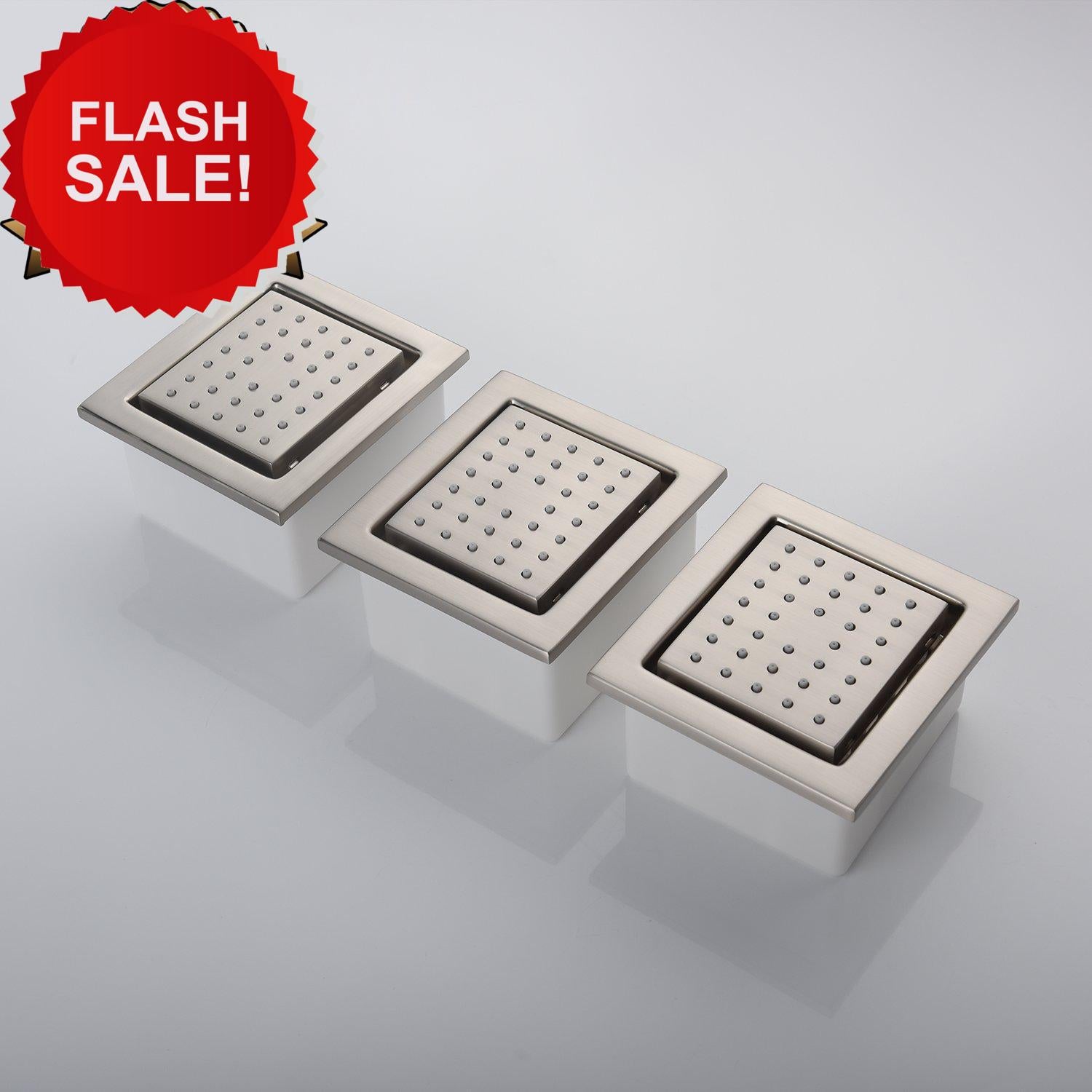 The system includes four flush-mounted brass body jets, each measuring 4 x 4 inches, providing an invigorating and customizable shower experience. The 4-way thermostatic valve ensures a constant and desired water temperature, protecting you and your family from scalding. It comes with a thermostatic cartridge, and each diverter knob controls water flow and pressure for individual functions. The valve is made of heavy-duty lead-free brass for durability and reliability.