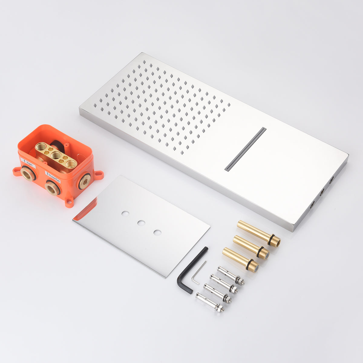 1x 22 inch shower head (rainfall and waterfall)