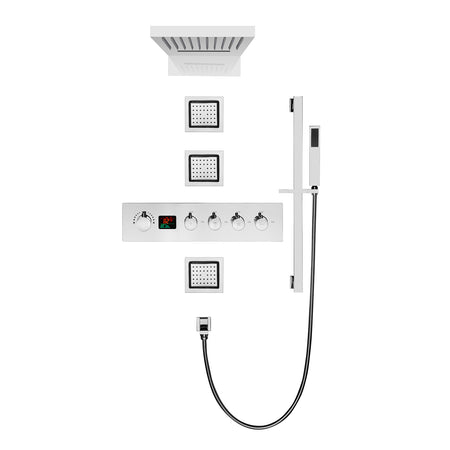 22-Inch LED or Non-LED Chrome 4-Way Digital Thermostatic Shower Faucet with Rainfall, Waterfall, Body Jet, and Sliding Bar
