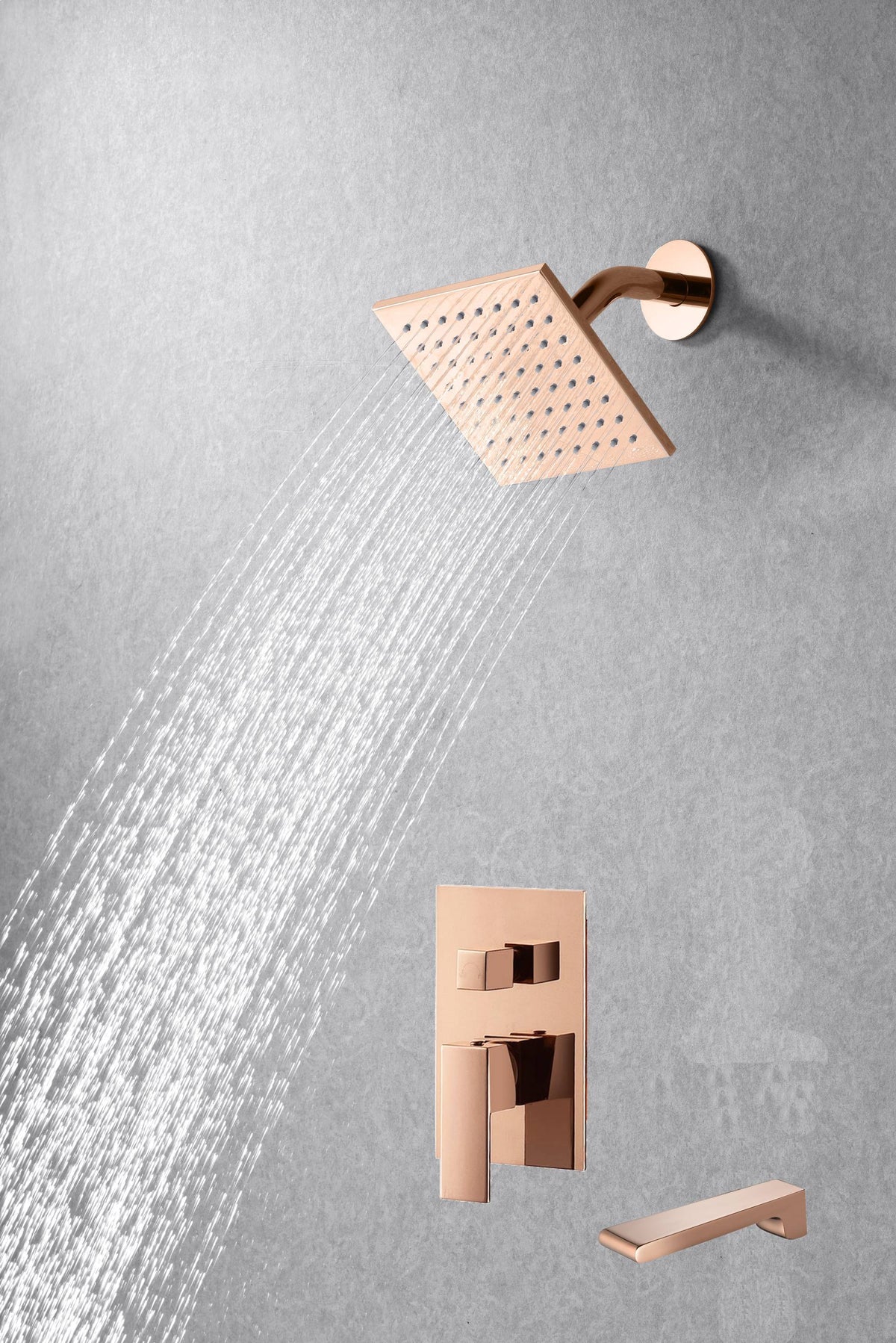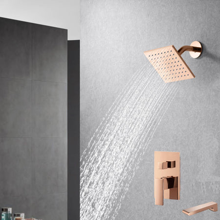 Create Your Perfect Shower Oasis: Rose Gold Wall Mounted Shower System with High Water Pressure, 6-Inch Regular Head, and Tub Spout