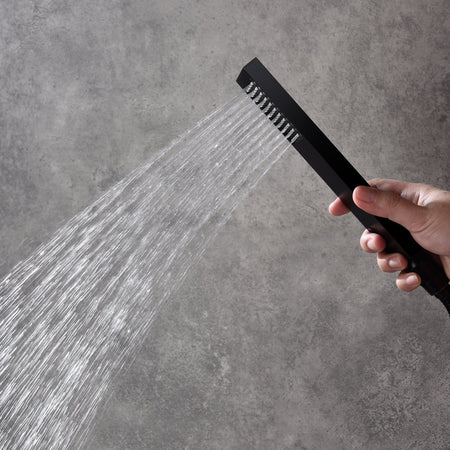 Experience the ultimate in shower luxury with our Flush-Mounted Matte Black Thermostatic Shower System. This 4-way system features dual 20x20 inch rainfall showerheads, six 2x2 inch adjustable body sprays, and a high-pressure handheld sprayer all in a sleek matte black finish.