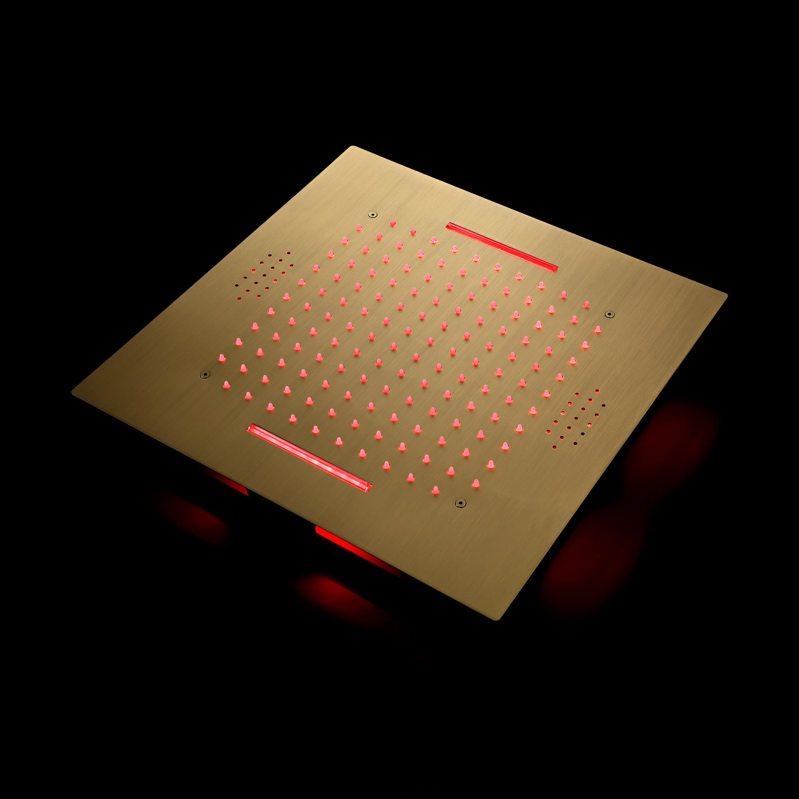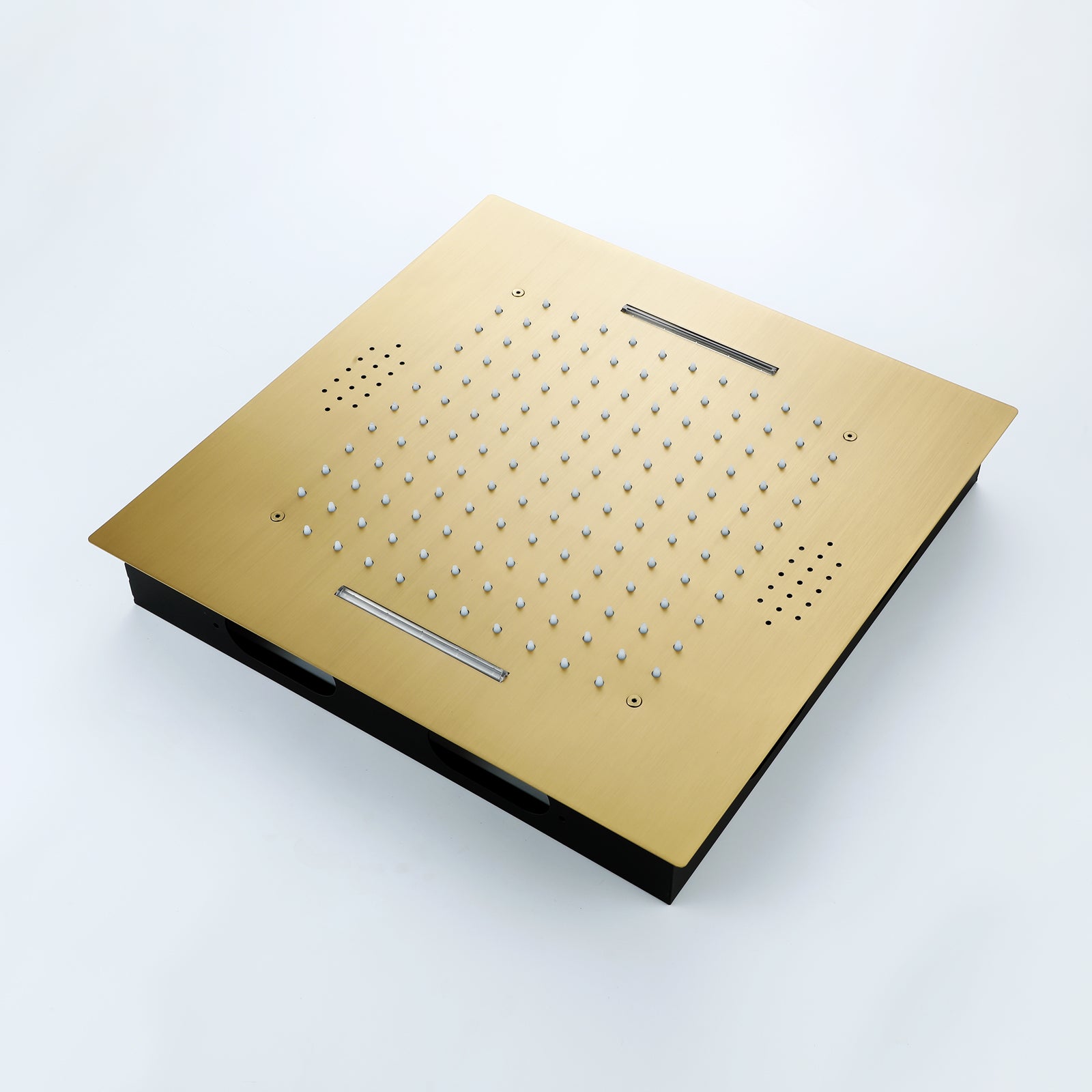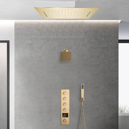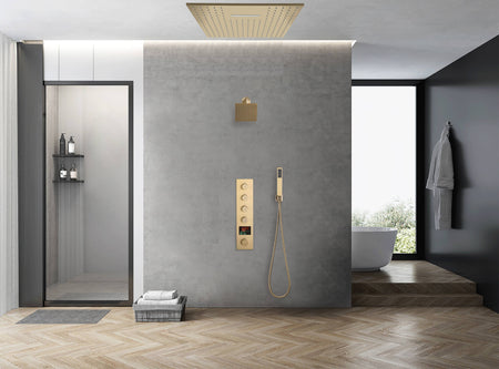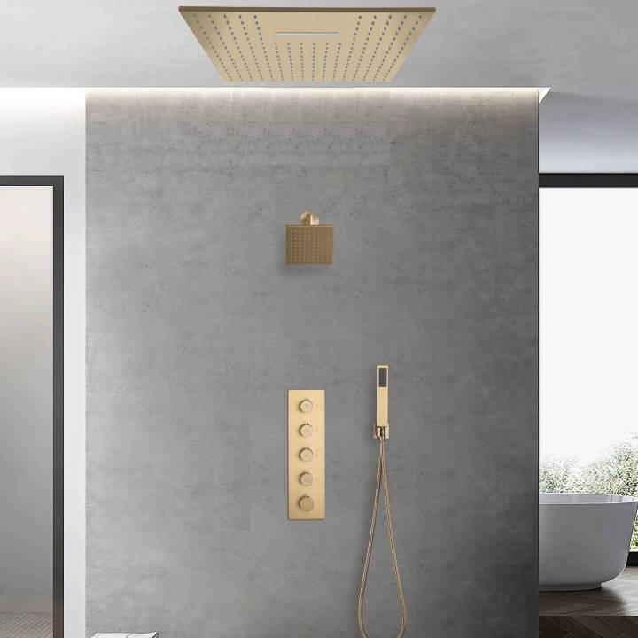 Brushed Gold 20-Inch Or 24-Inch Rainfall Waterfall Ceiling Mount Shower Head with 4-Way Thermostatic Faucet, High-Pressure Wall Mount Head