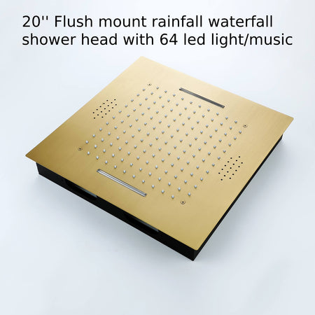 (2) 20'' rainfall waterfall head flush mount with 64 led light and Bluetooth music:
