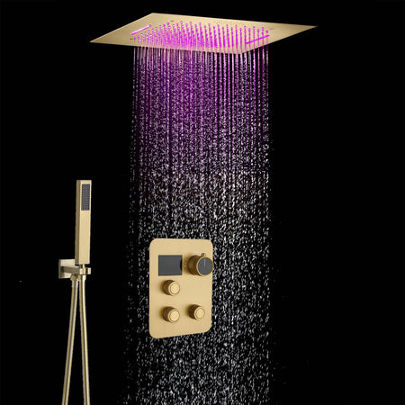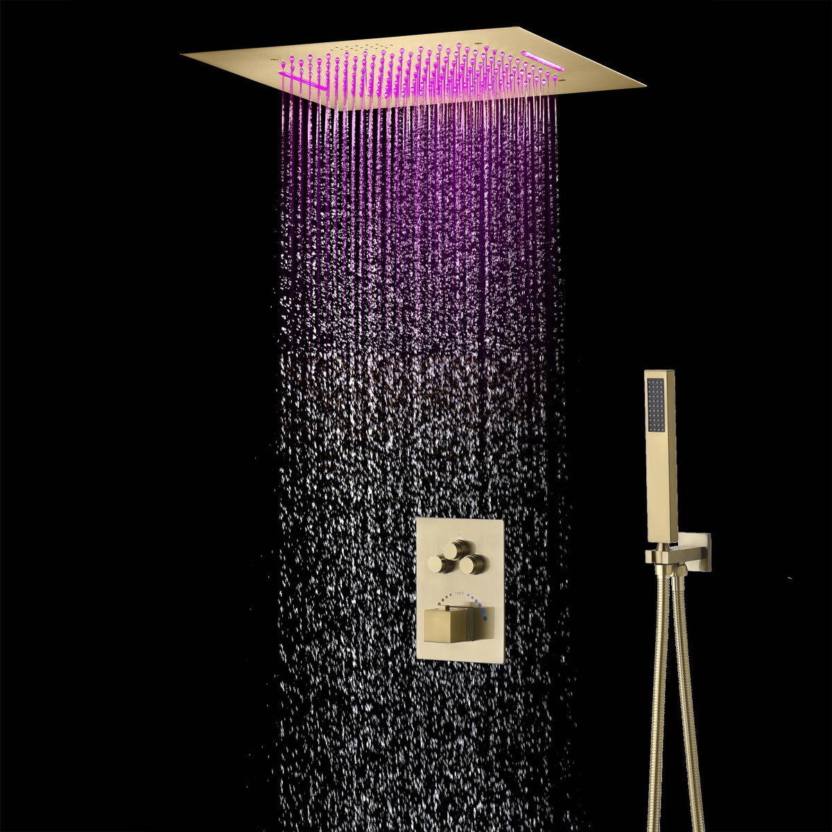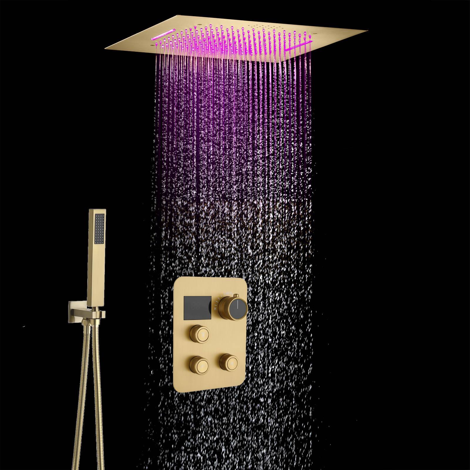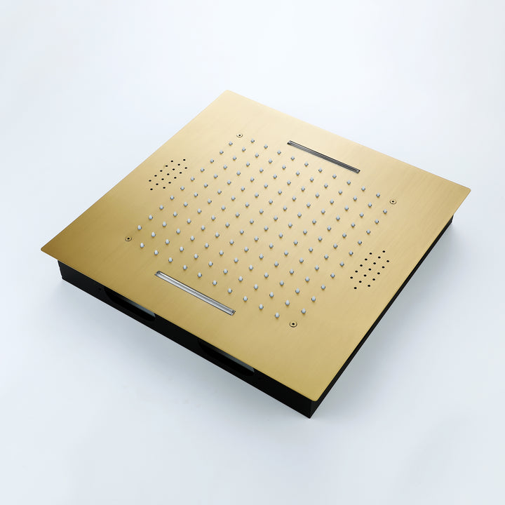 Brushed Gold 20x20" Thermostatic Shower Faucet with Bluetooth Music and 64 LED Lights