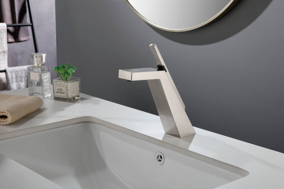 Brushed Gold or matte black or brushed nickel Bathroom Sink Faucet single handle with pop up overflow brass drain