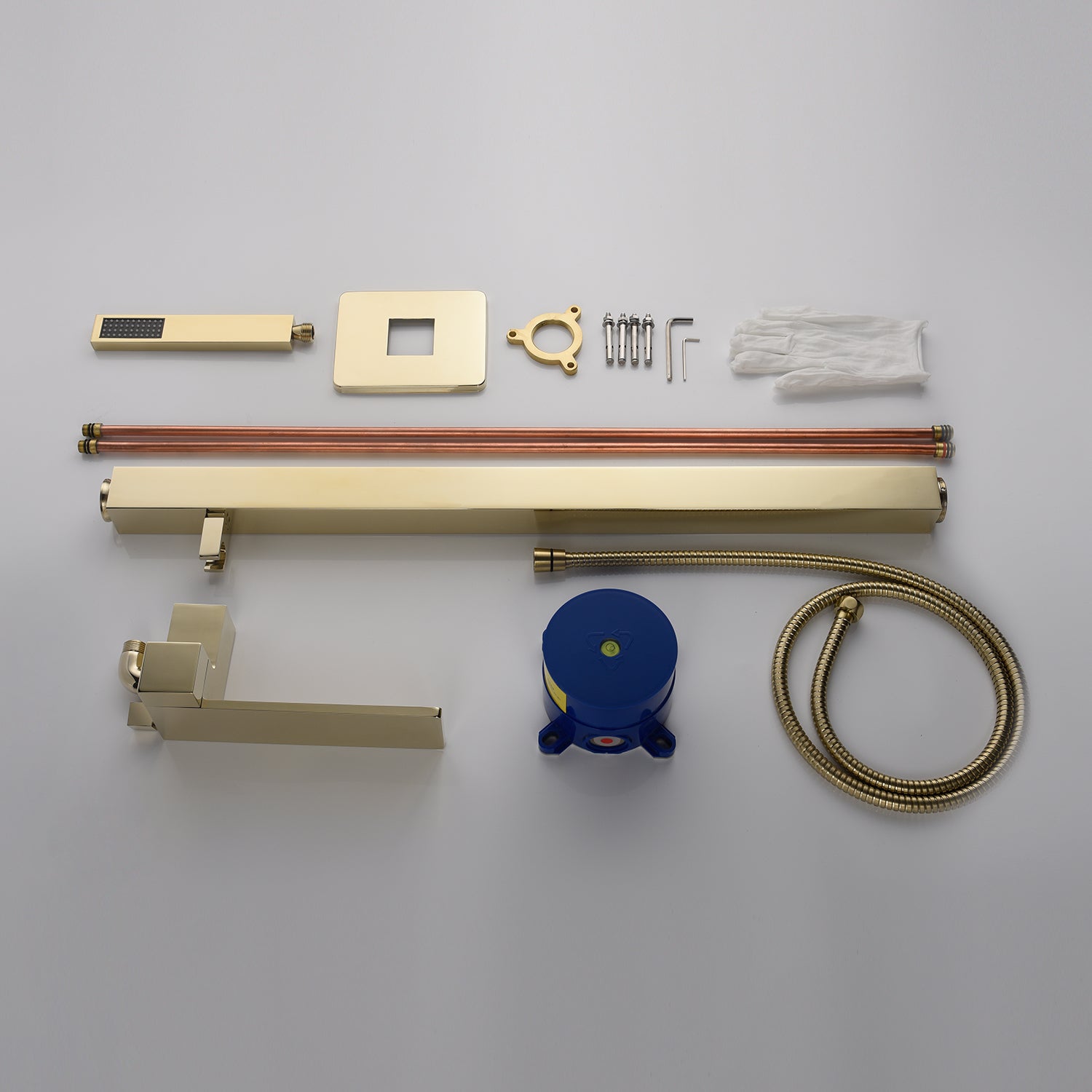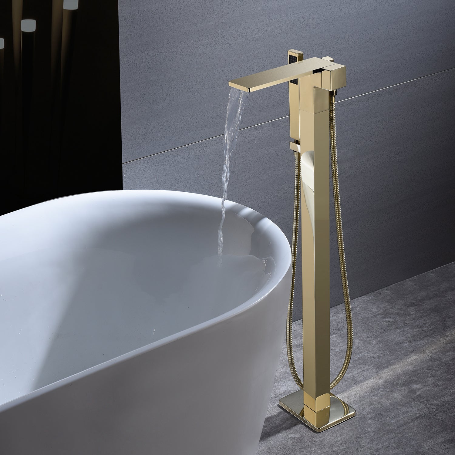 - Hand Shower: The brass hand shower with a modern, elegant design perfectly integrates with the main faucet. It is versatileโideal for a full-body shower, bathing your child, or cleaning the tub.