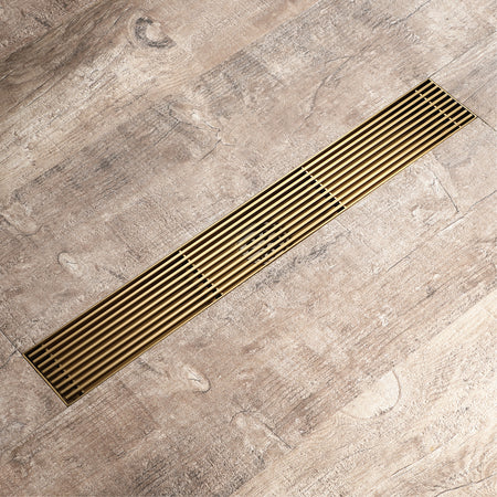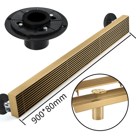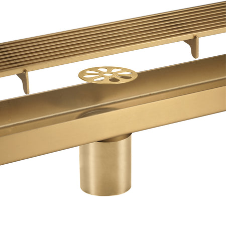 Brushed gold Linear shower drain stainless steel material 35.4 inch with grid cover with hair strainer and adjustment feet