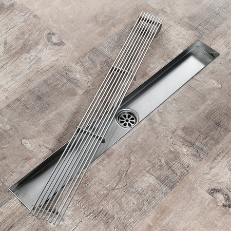 Brushed Nickel Linear shower drain stainless steel material 35.4 inch with grid cover with hair strainer and adjustment feet