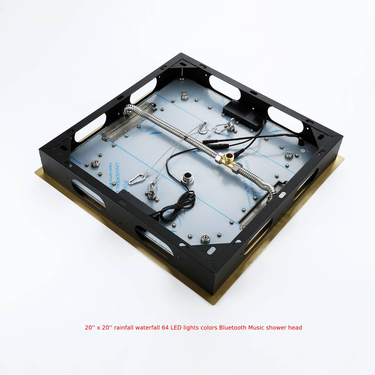 - Head Functions: Offers a waterfall, rainfall, LED light, and Bluetooth Music features. The 64 LED lights and music can be controlled by a remote panel, touch panel, or your cell phone. You can turn on or off the LED light or music as per your mood while showering.