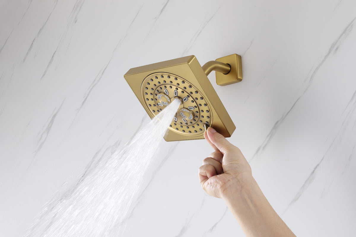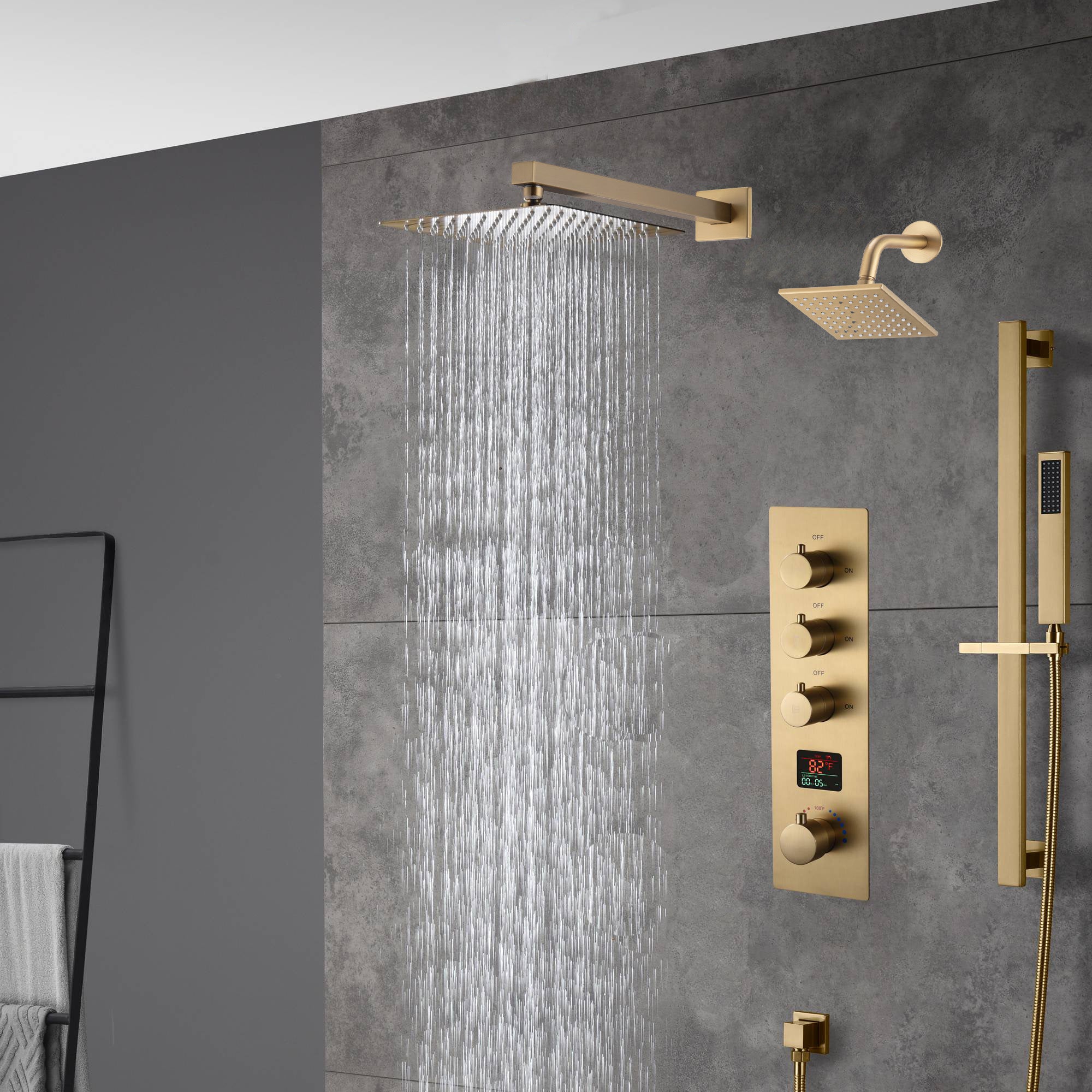 Brushed Gold rainfall shower head high pressure shower head 3 way digital display thermostatic valve shower heads systems each function work at the same time and separately