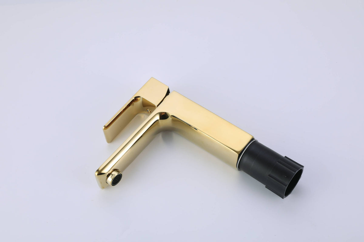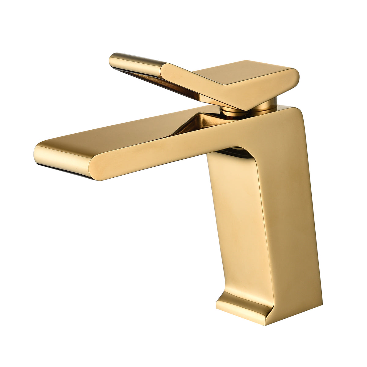 Polished Gold Basin Faucet with Zinc Alloy Handle: