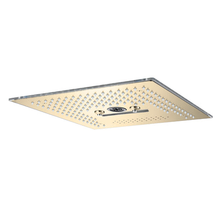 Flushed Mounted Brushed Gold 16'' x 16'' Shower Head: Featuring 64 LED Lights, Music, Rainfall, Waterfall, Mist, 360 Degrees Rotation, and Hydro Jet Technology