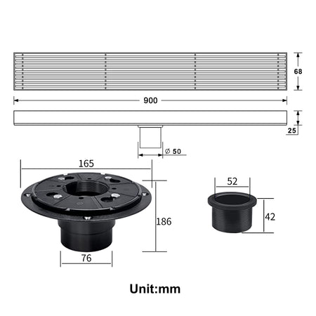 Matte Black Linear shower drain stainless steel material 24 inch or 35.4 inch with grid cover with hair strainer and adjustment feet