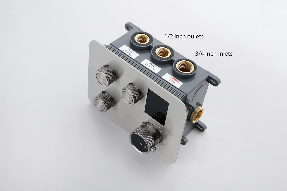 - High-quality temperature cartridge that requires hot water pipeline on the left side and cold water pipeline on the right side.