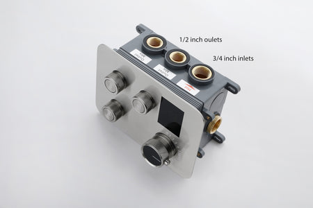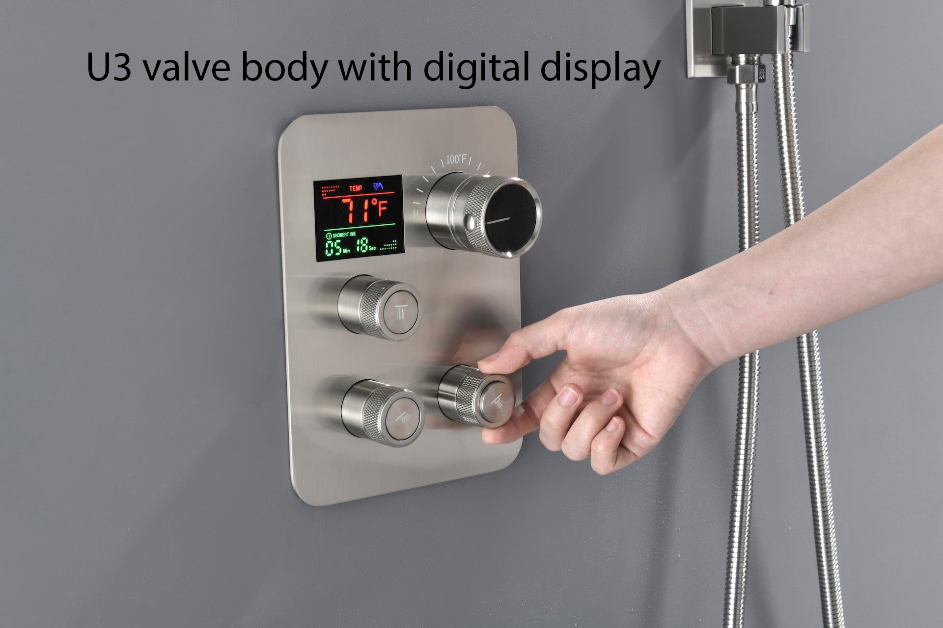 (2) U3 valve style: with digital display, the push buttoms can adjust the water flow and water pressure, it requires 1/2 inch or 3/4 inch hot and cold water pipelines, water flow 2.5~7.8GPM ( high water flow);
