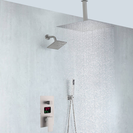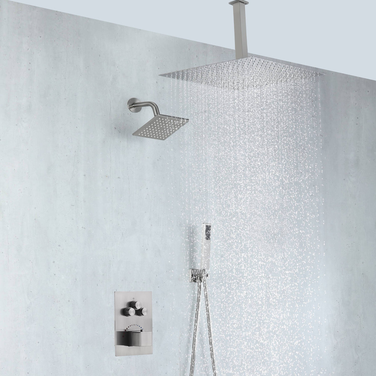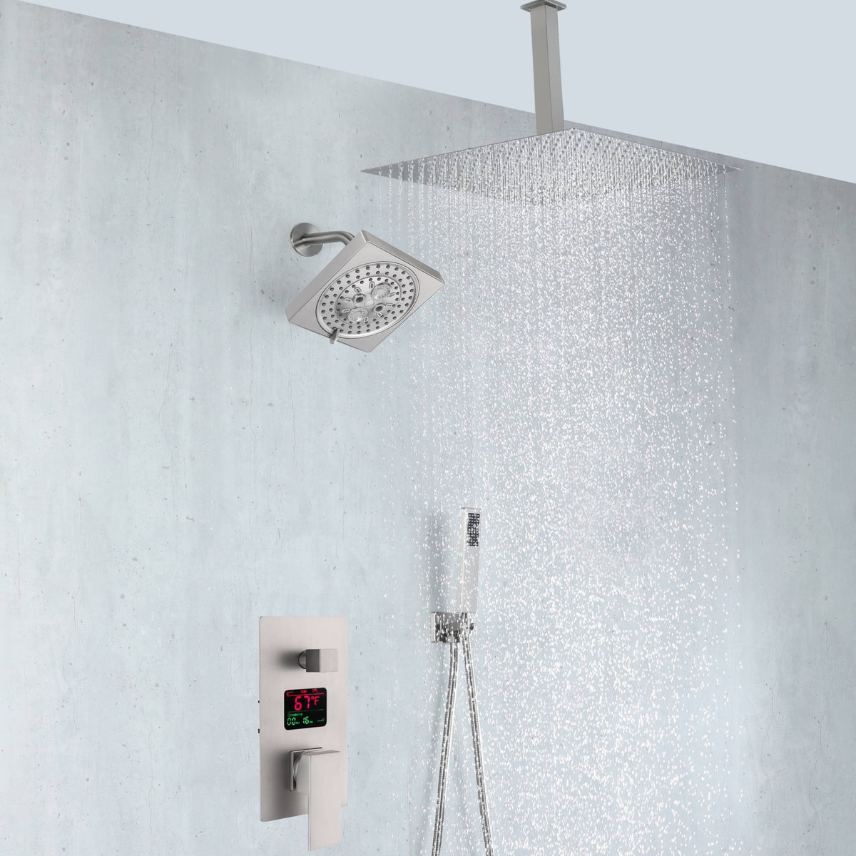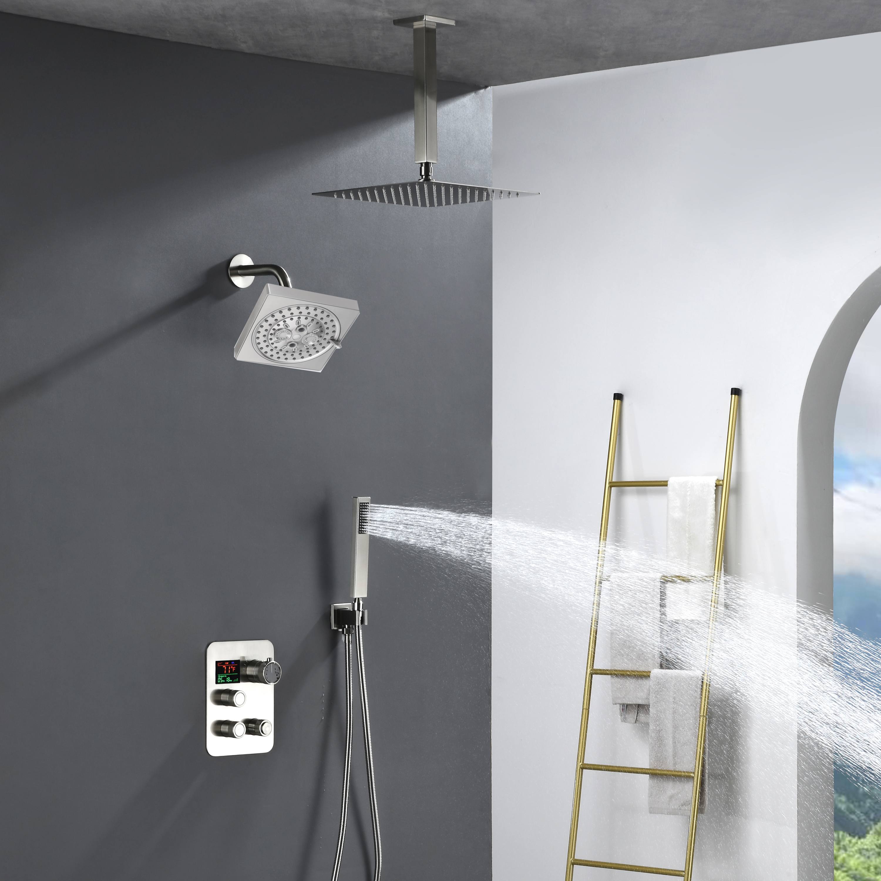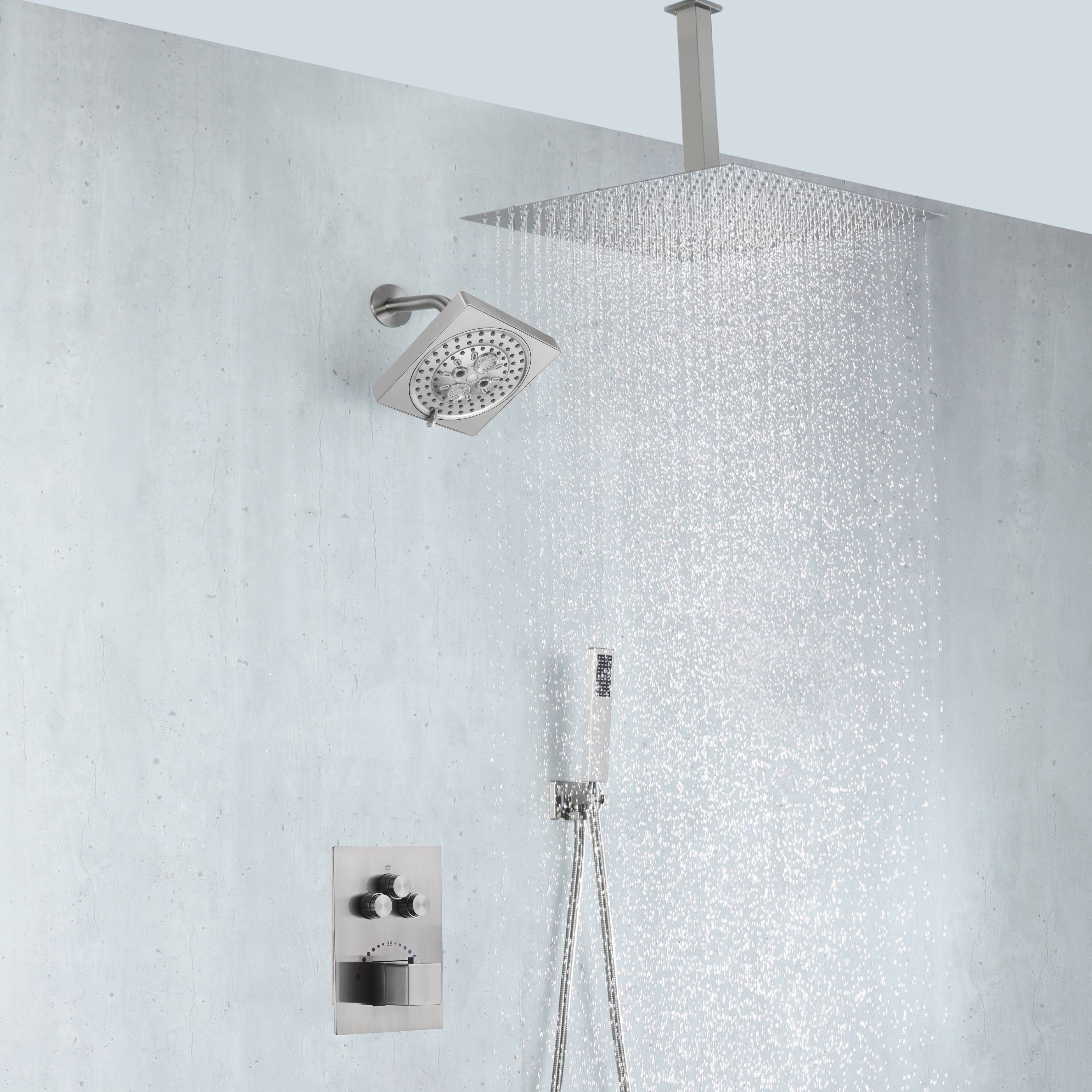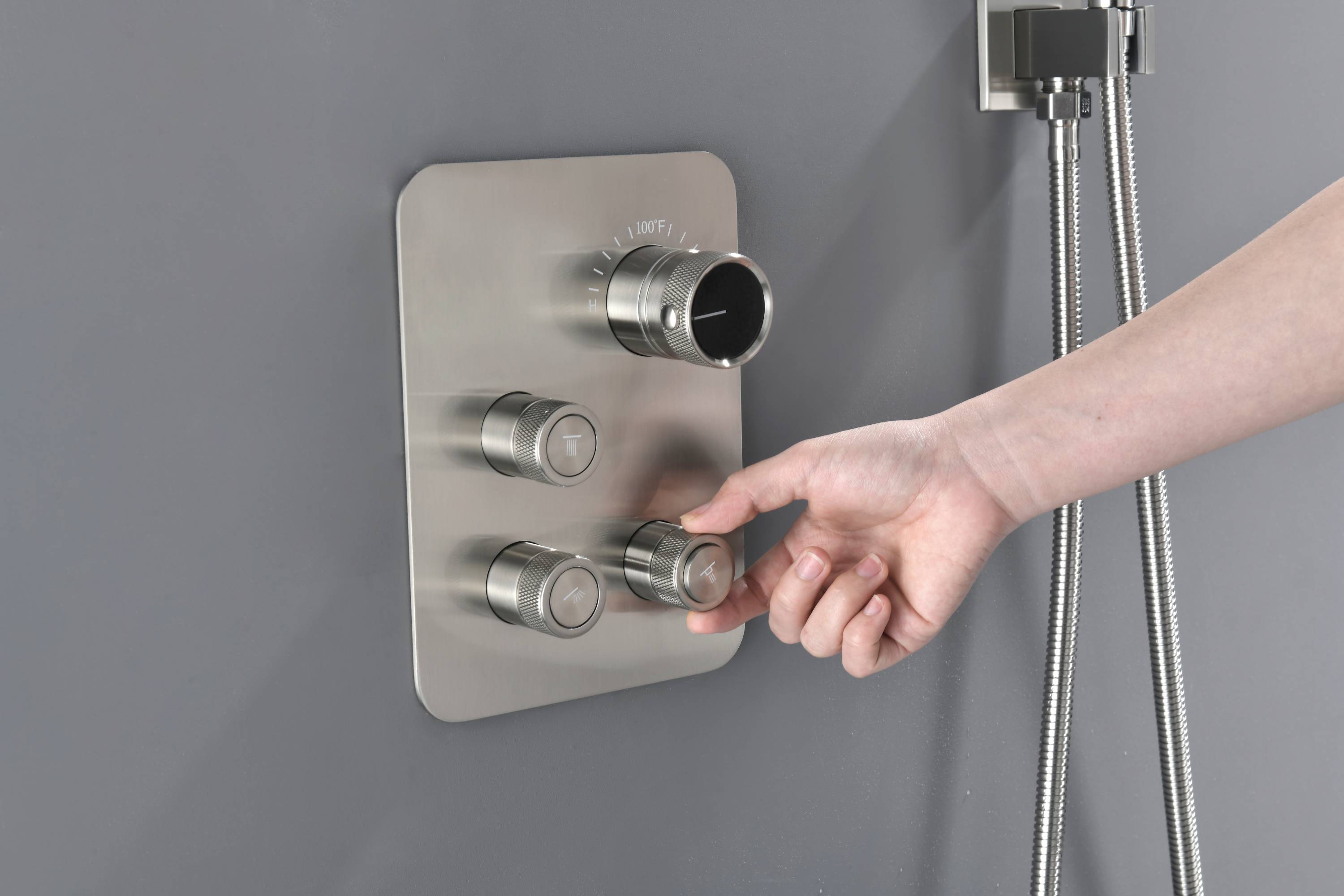 Brushed nickel rainfall shower head high pressure shower head 3 way thermostatic valve shower heads systems each function work at the same time and separately