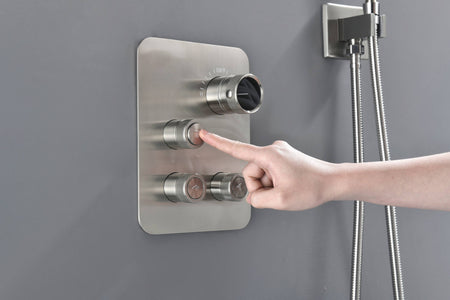 The heart of your shower system, this brushed nickel 3-way thermostatic valve with trim can handle each function both simultaneously and separately. Embedded with a thermostatic cartridge, it consistently maintains your desired water temperature. Each diverter knob is designed to independently control water flow and pressure, ensuring a personalized shower experience.