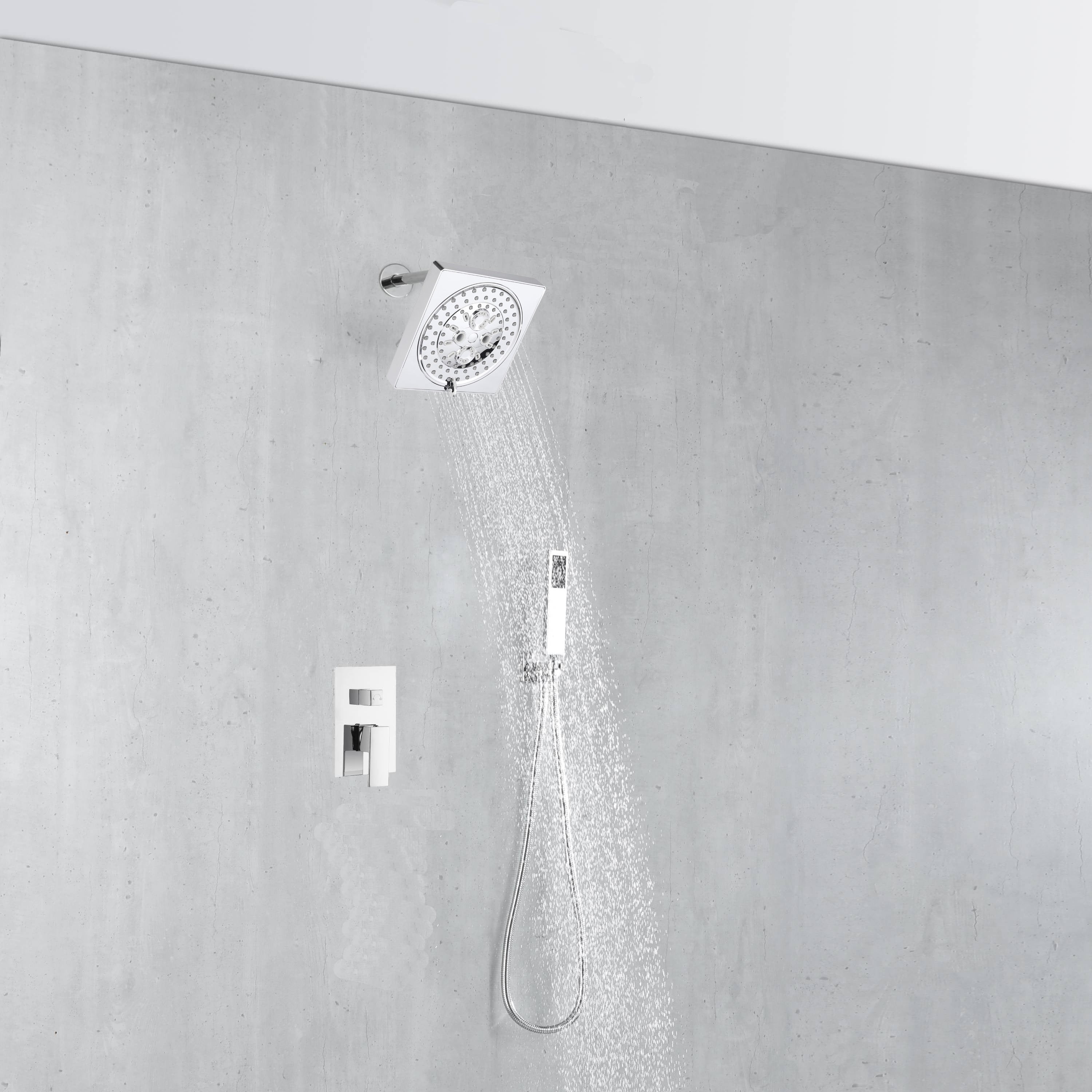 Chrome 6 inch regular or 8 INCH 3 LED colors regular head Wall Mounted Rainfall Shower Faucet with Hand Shower Mixer Tap