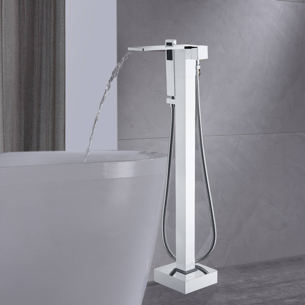 Chrome Waterfall Floor Mount Bathtub Shower Faucet W/ Hand Shower Tub Filler Mixer Free Standing