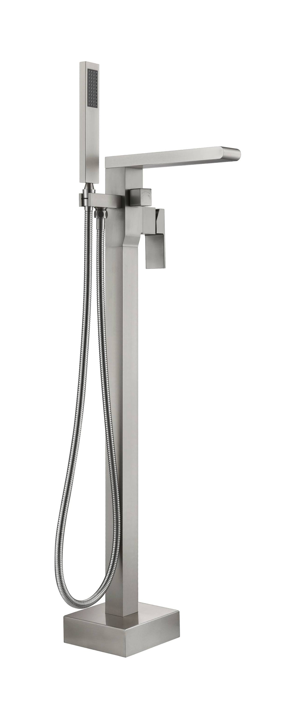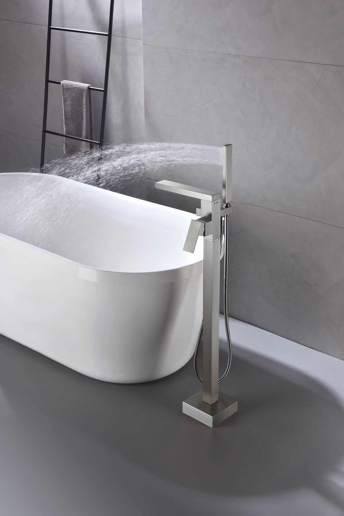 Waterfall pressure balance Freestanding Bathtub Faucet Tub Filler Brushed Nickel Waterfall Floor Mount