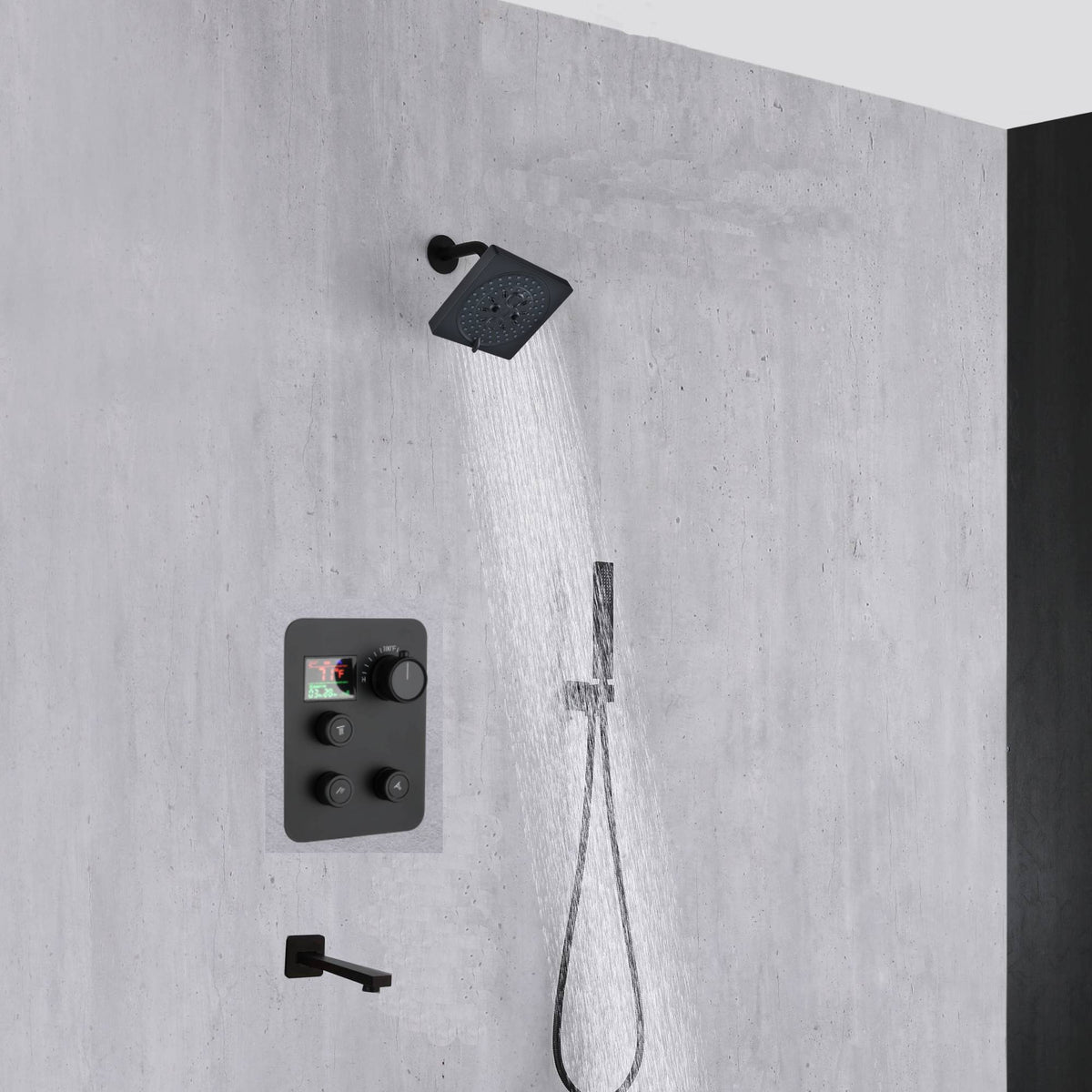 In addition to the color-changing LED rain shower head, our Matte Black 3-Way Thermostatic Shower Faucet Set also includes a non-LED rain shower head option. This provides you with the flexibility to choose the type of shower head that best suits your preferences and bathroom aesthetic.
