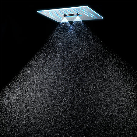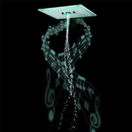 Upgrade your shower routine with our brushed nickel flushed mounted 16'' x 16'' shower head. With its stunning LED lights, versatile shower modes, high-quality construction, remote panel control, and integrated Bluetooth speaker, this shower head offers a luxurious and immersive bathing experience.