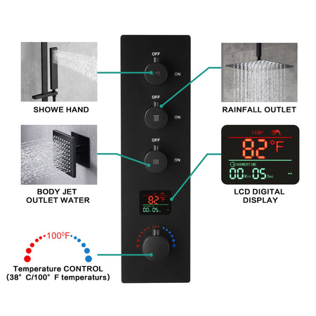 Thermostatic Rough-In Valve: Our shower system includes a 3-way thermostatic rough-in valve with trim, ensuring a consistent water temperature throughout your shower. the digital display work by water flow, no need battery.