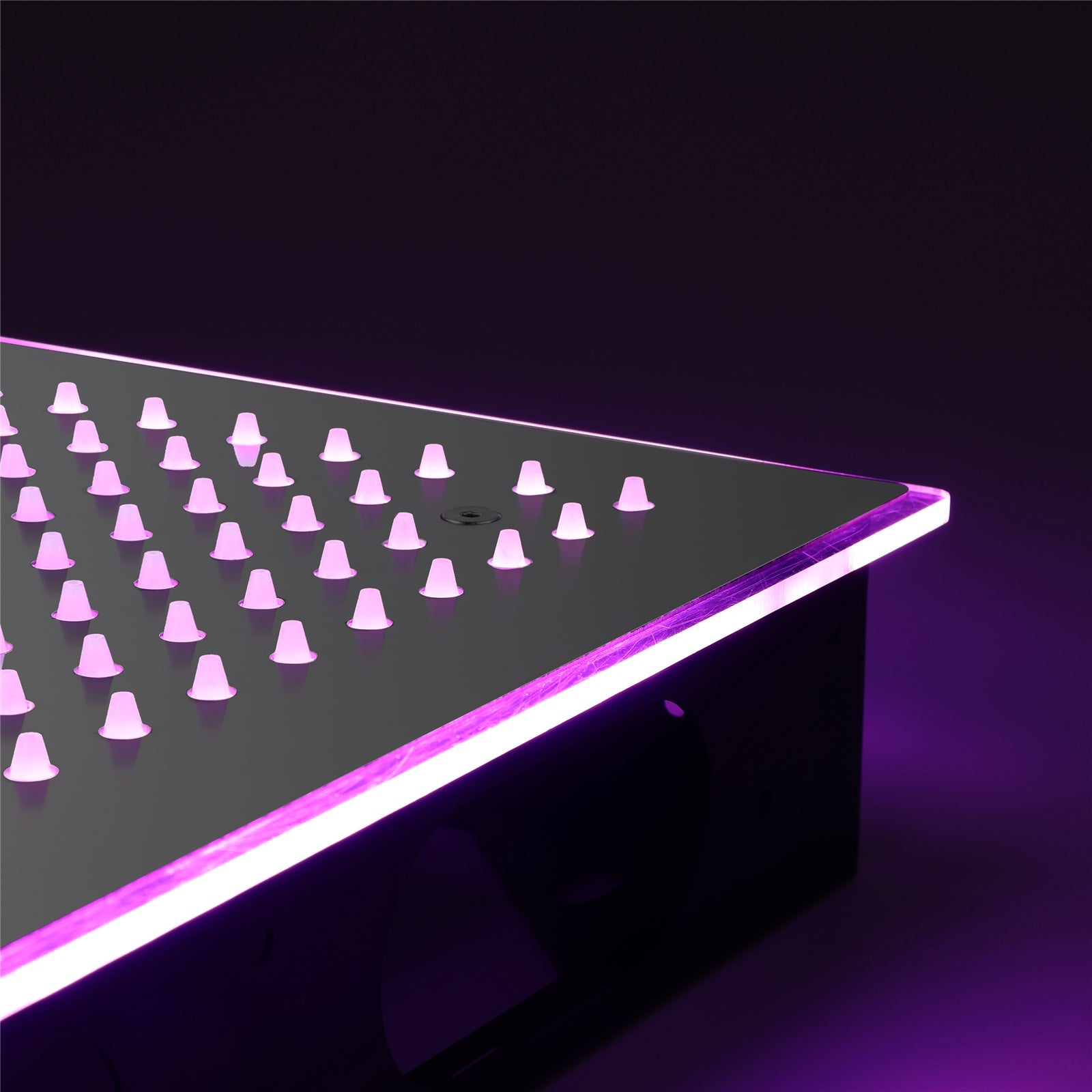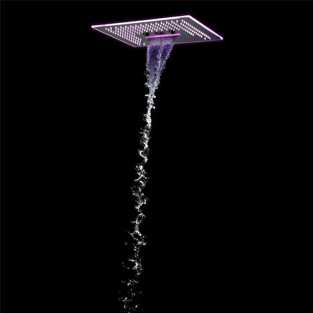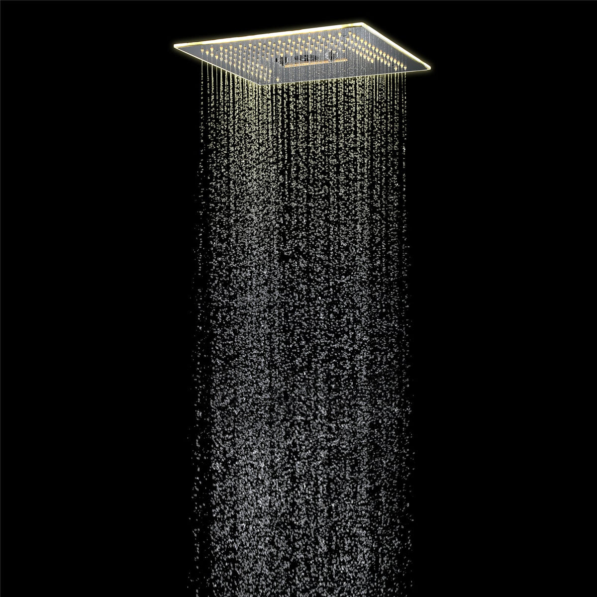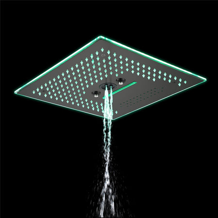 16-Inch Rainfall Shower Head with LED Lights and Bluetooth Speaker:ย The large flush-mounted shower head offers a luxurious rainfall shower experience. The 64-color LED lights and Bluetooth speaker can be controlled via your cell phone, enabling you to personalize your shower environment.