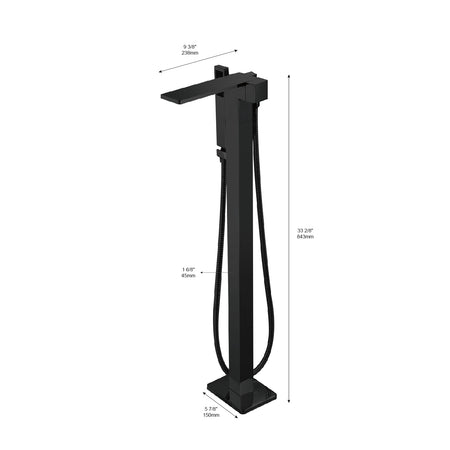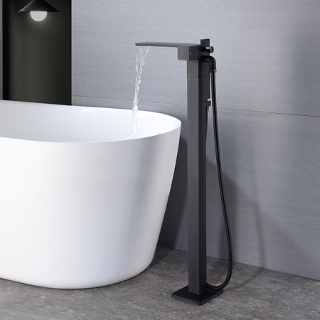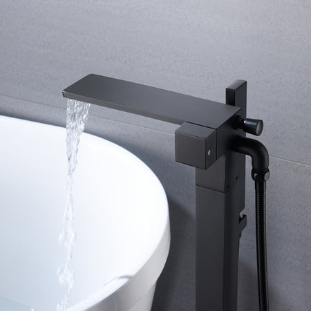 Waterfall Matte Black Freestanding Single Handle Bathtub Faucet with Handheld Sprayer