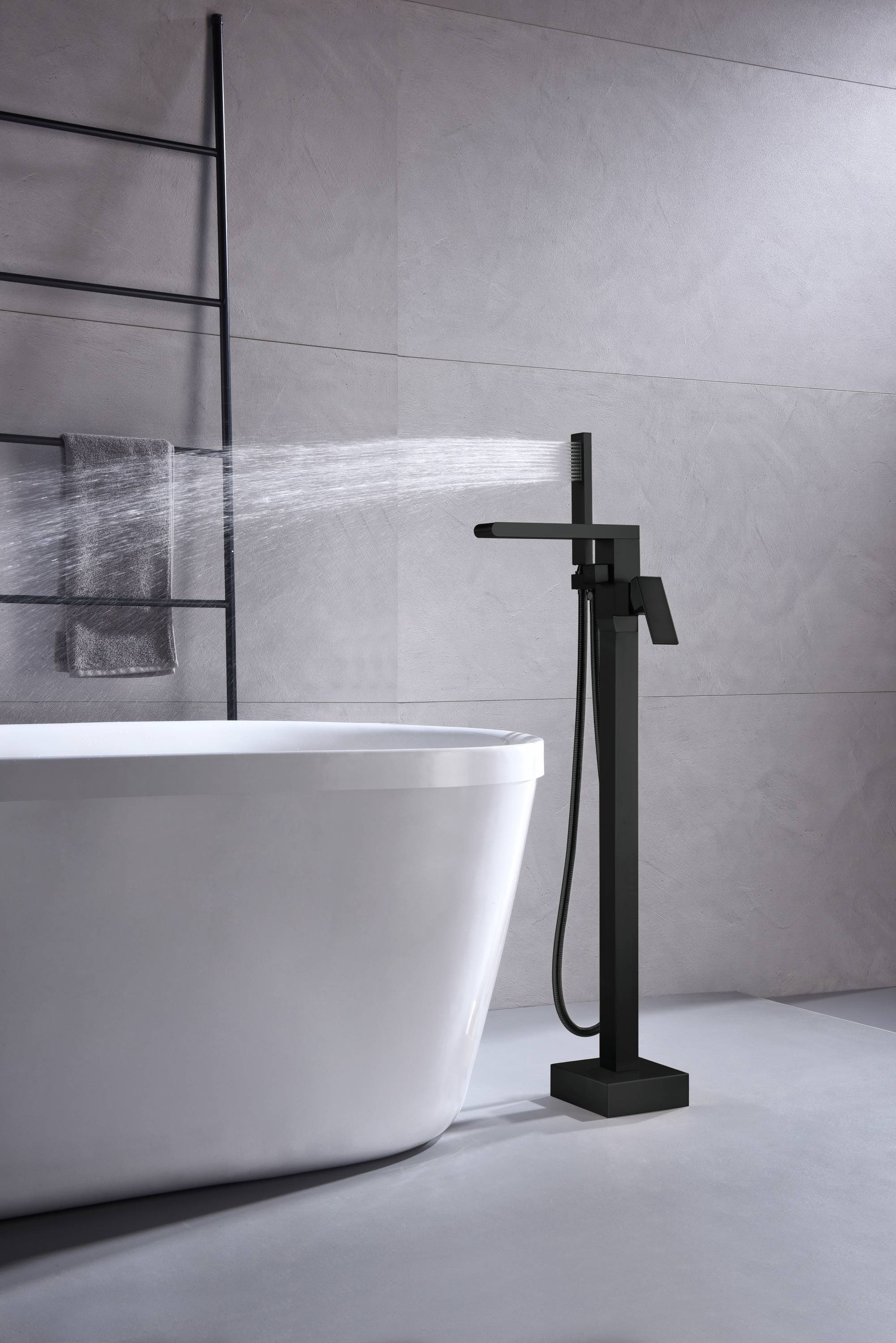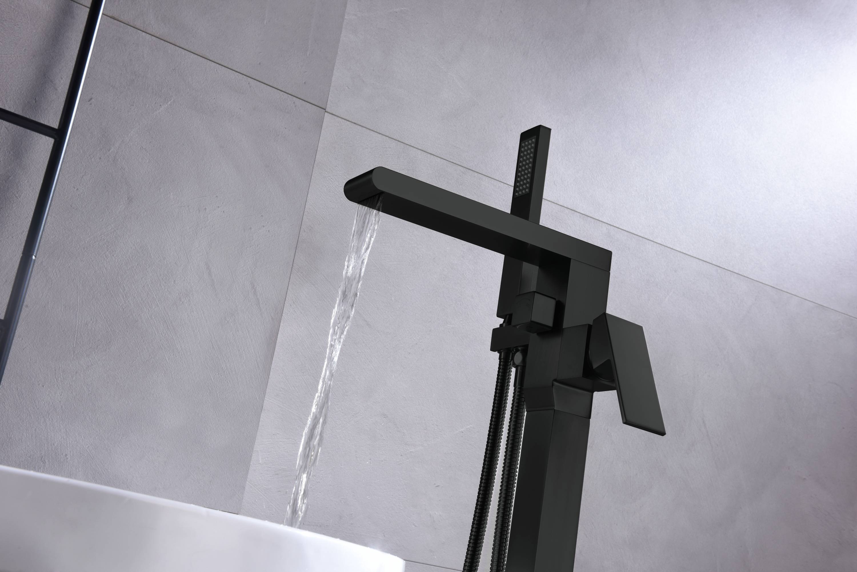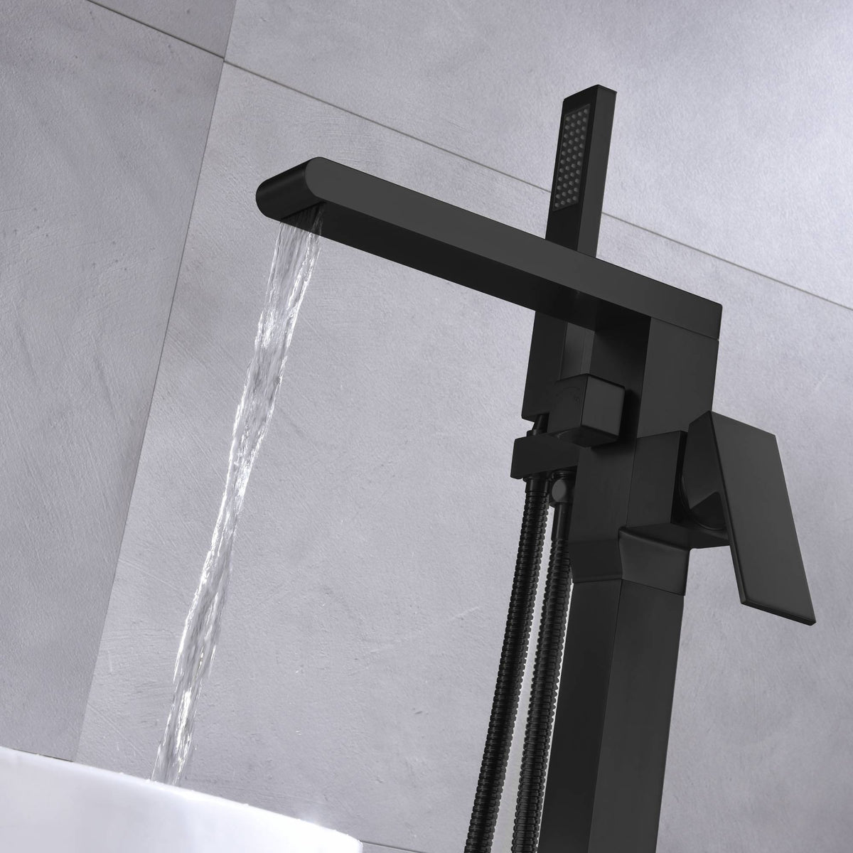 Waterfall pressure balance Matte Black Freestanding Single Handle Bathtub Faucet with Handheld Sprayer
