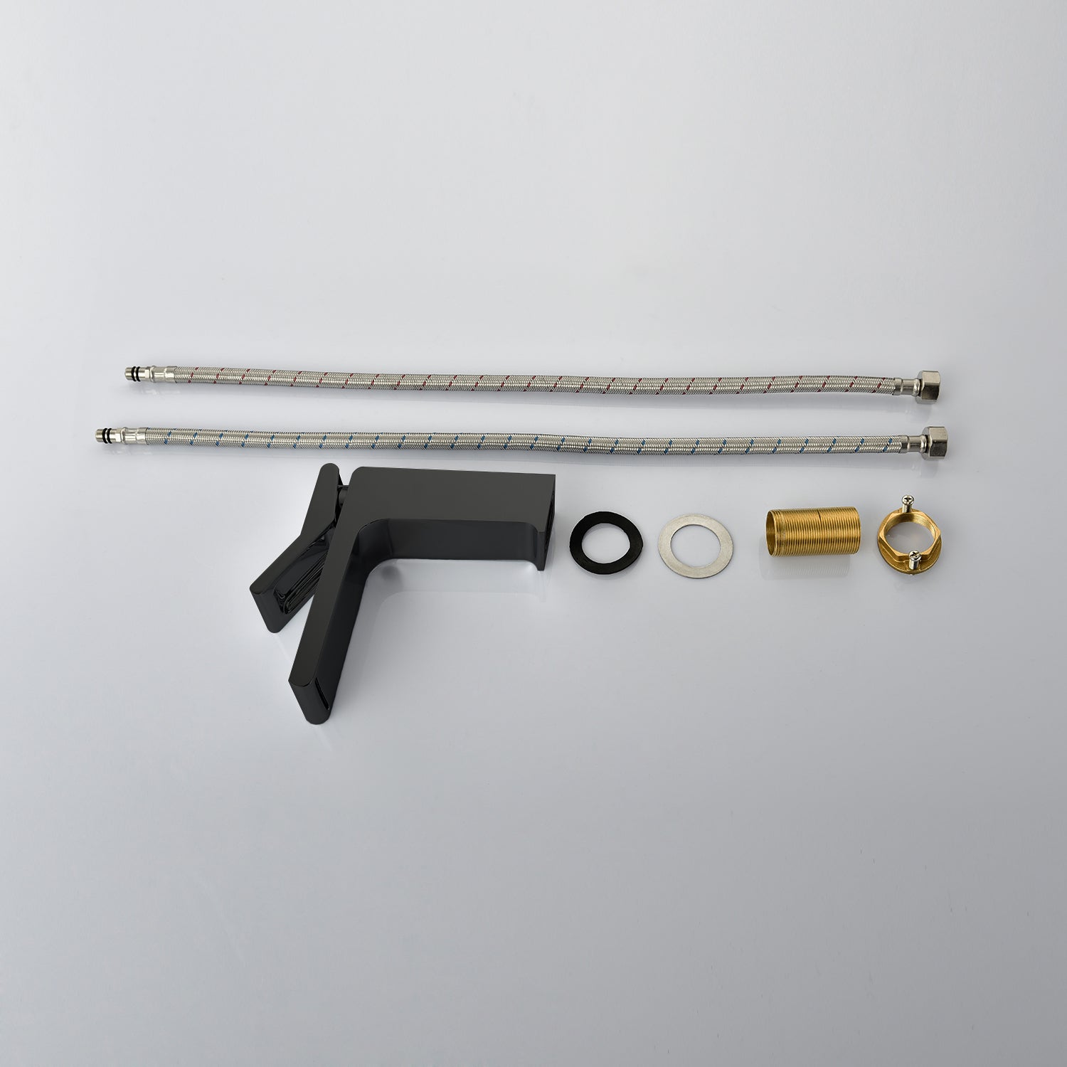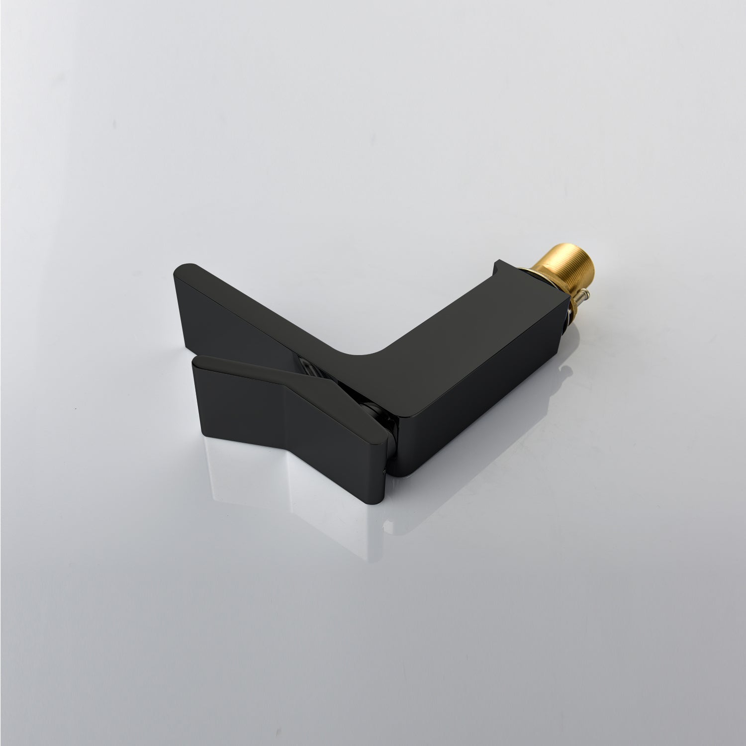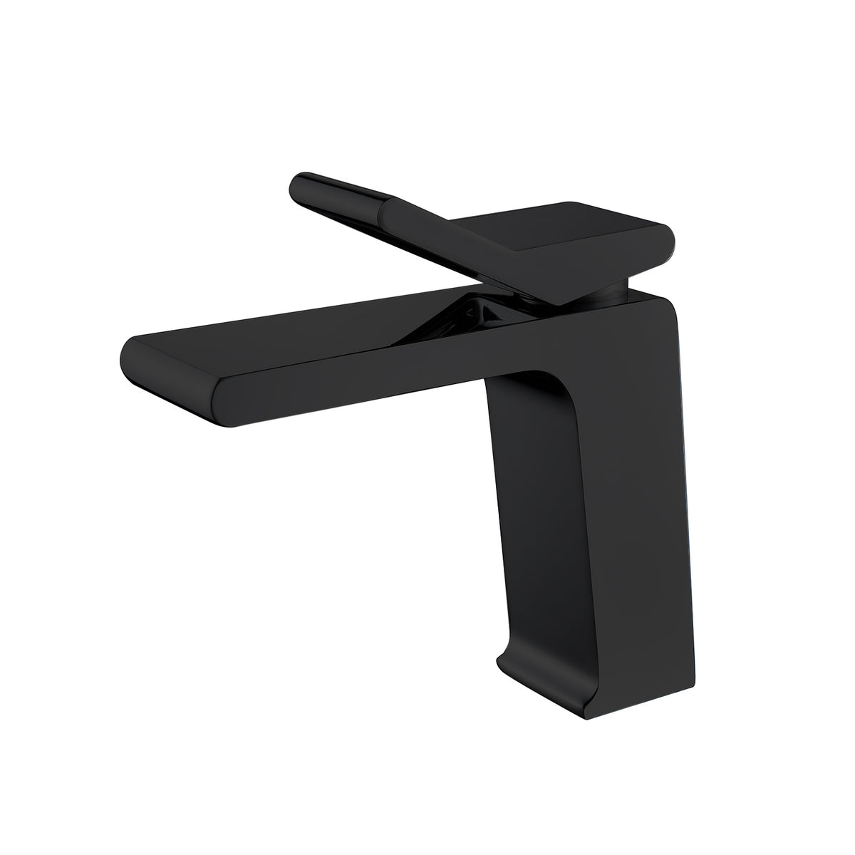matte black waterfall single handle bathroom sink faucet with pop up overflow brass drain
