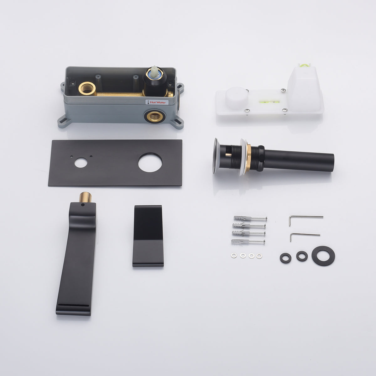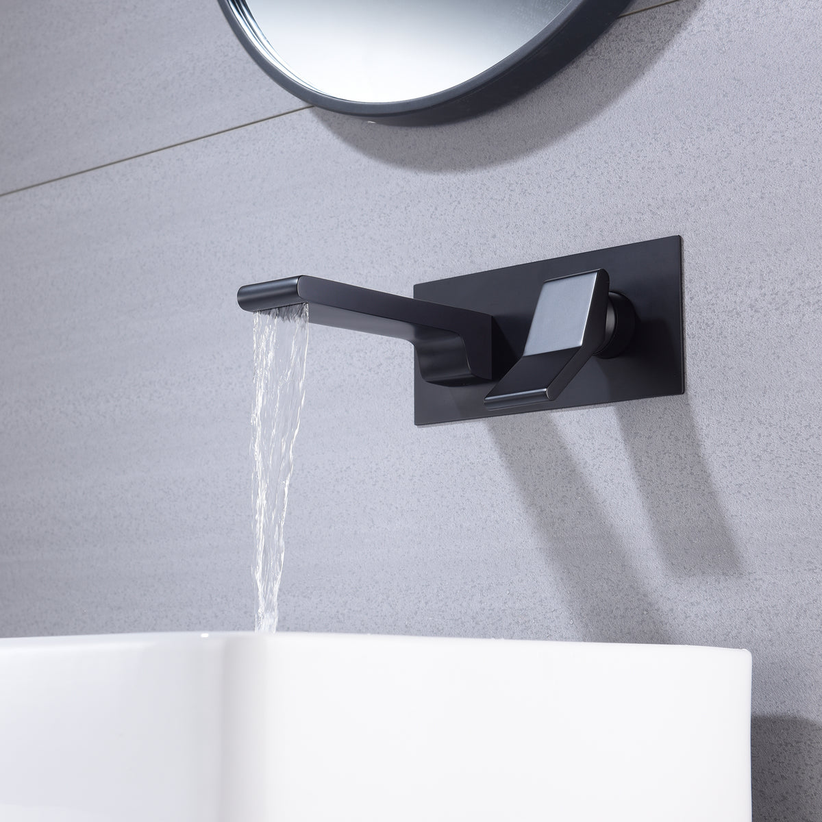 Upgrade your bathroom with our matte black wall-mounted waterfall bathroom faucet. Meticulously designed, this fixture combines functionality, high-quality materials, and a contemporary aesthetic to bring a touch of luxury to your bathroom.