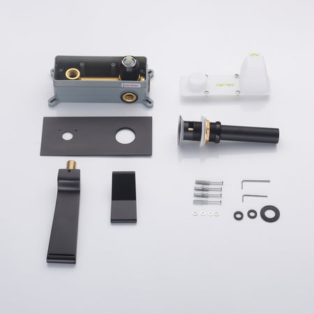 This matte black wall-mounted waterfall bathroom faucet combines style, functionality, and quality. With its square knob handle, waterfall spout, and matte black finish, it adds a modern and elegant touch to any bathroom decor. The lead-free solid brass construction, UPC ceramic cartridge, and included overflow brass pop-up drain ensure its durability and reliable performance.