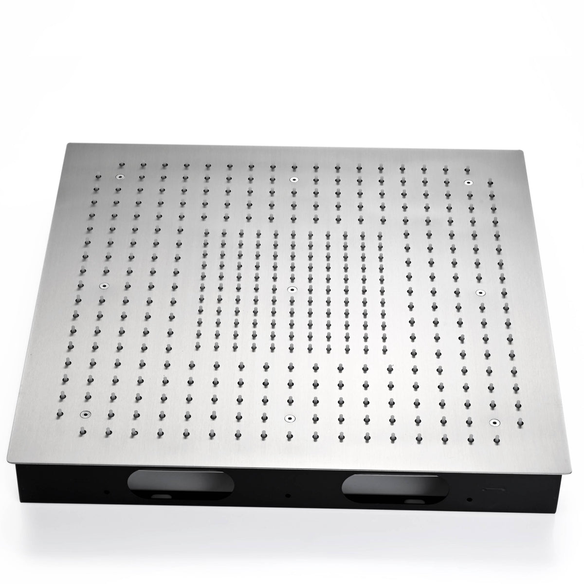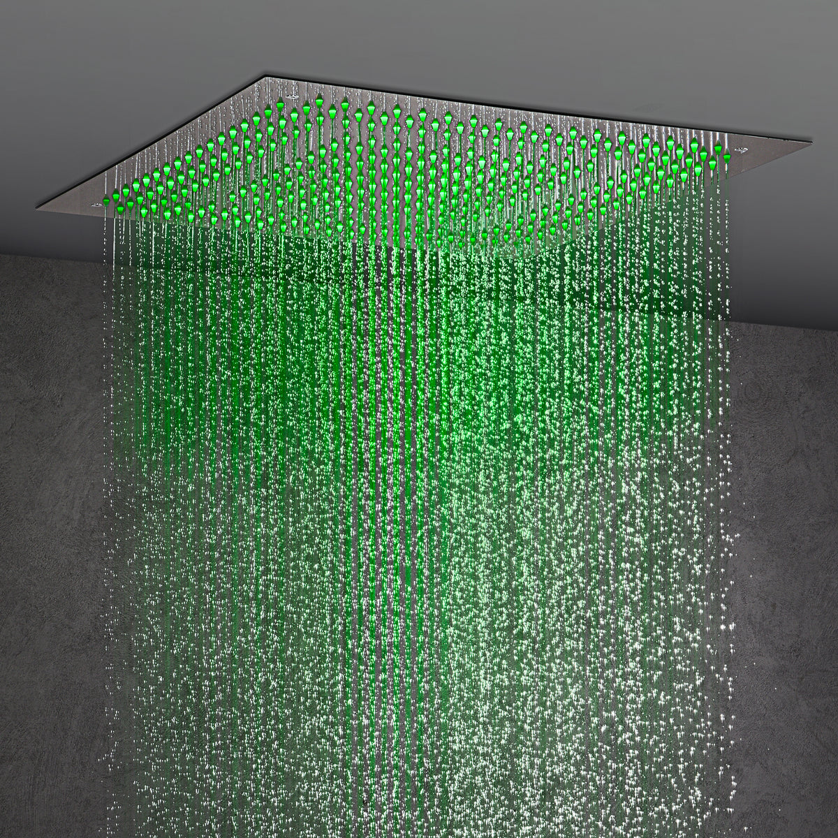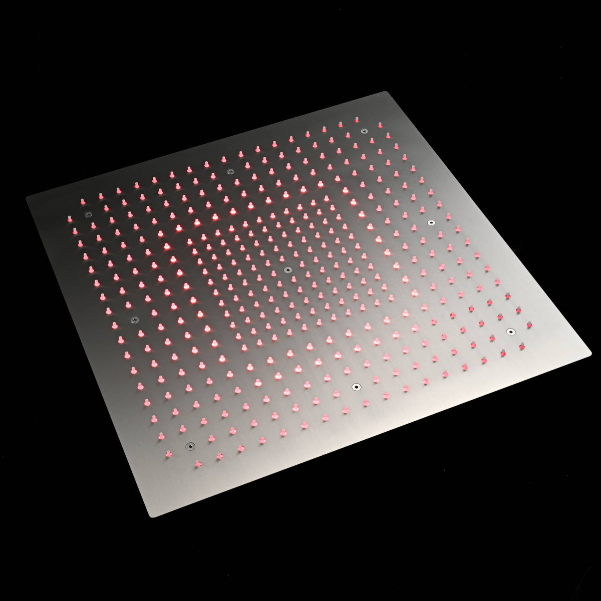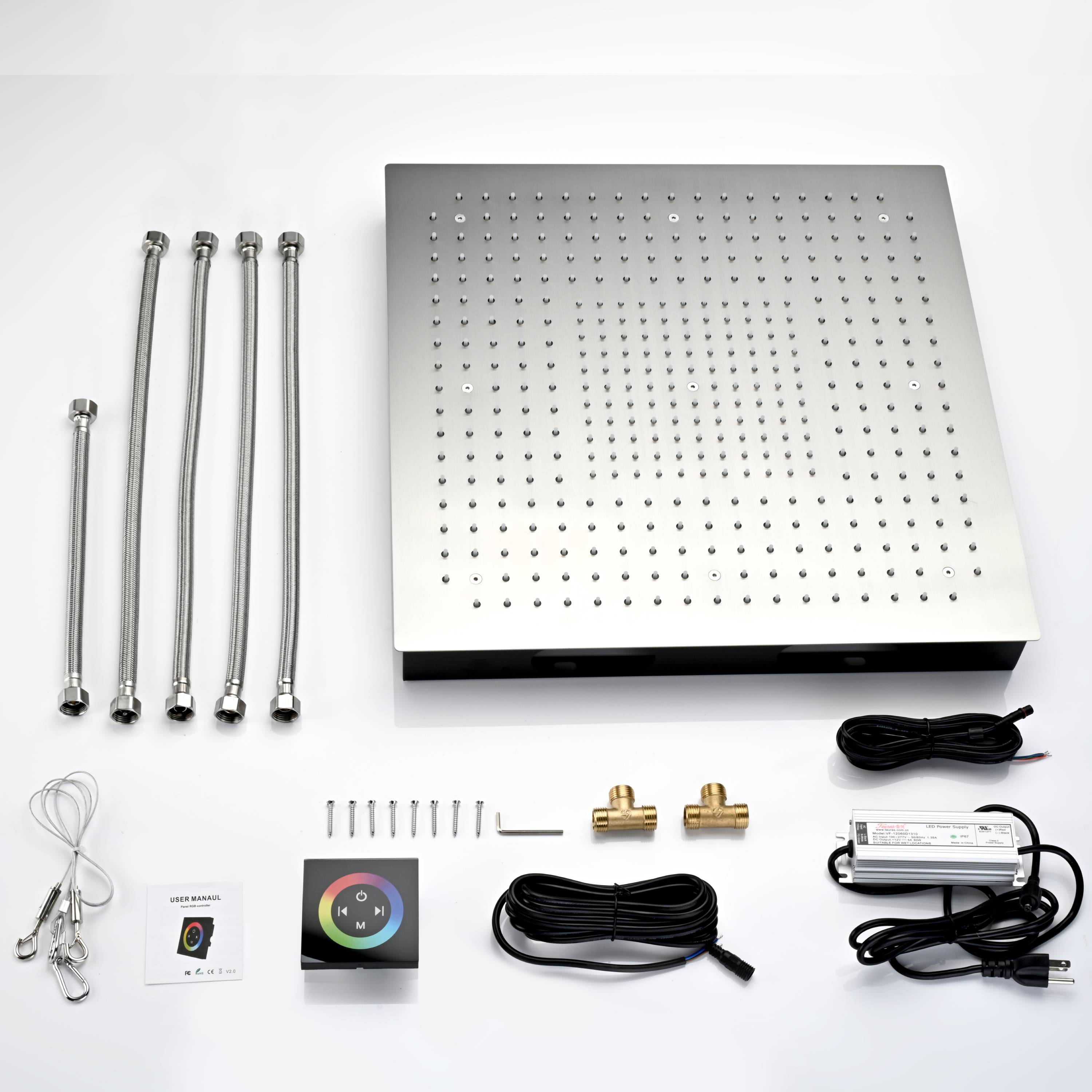 Upgrade your shower routine with our easy-to-install flush mounted ceiling 20x20 inch brushed nickel rain shower head. With its captivating LED lights, premium materials, optimal water flow, and simple installation process, this shower head offers a serene and rejuvenating bathing experience.