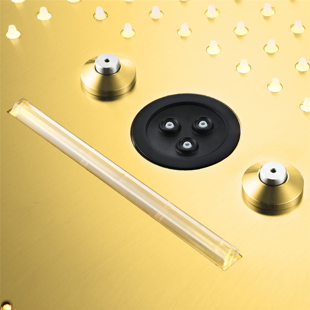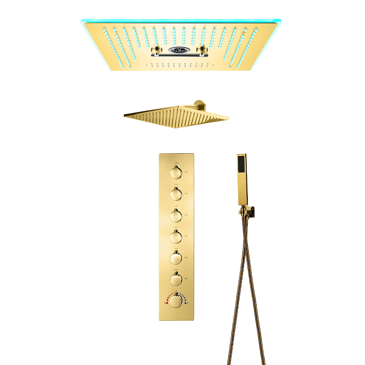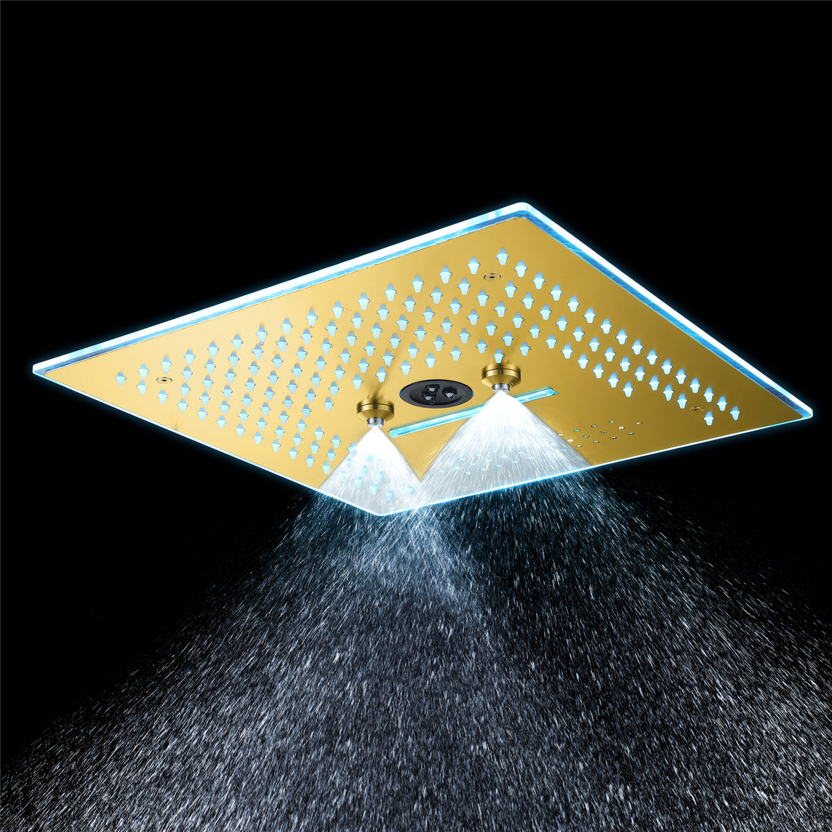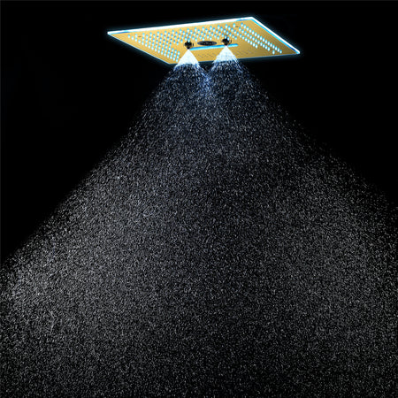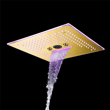 16-Inch Rainfall Waterfall Shower Head:ย This large shower head features integrated Bluetooth music and 64 LED lights for a truly immersive experience.