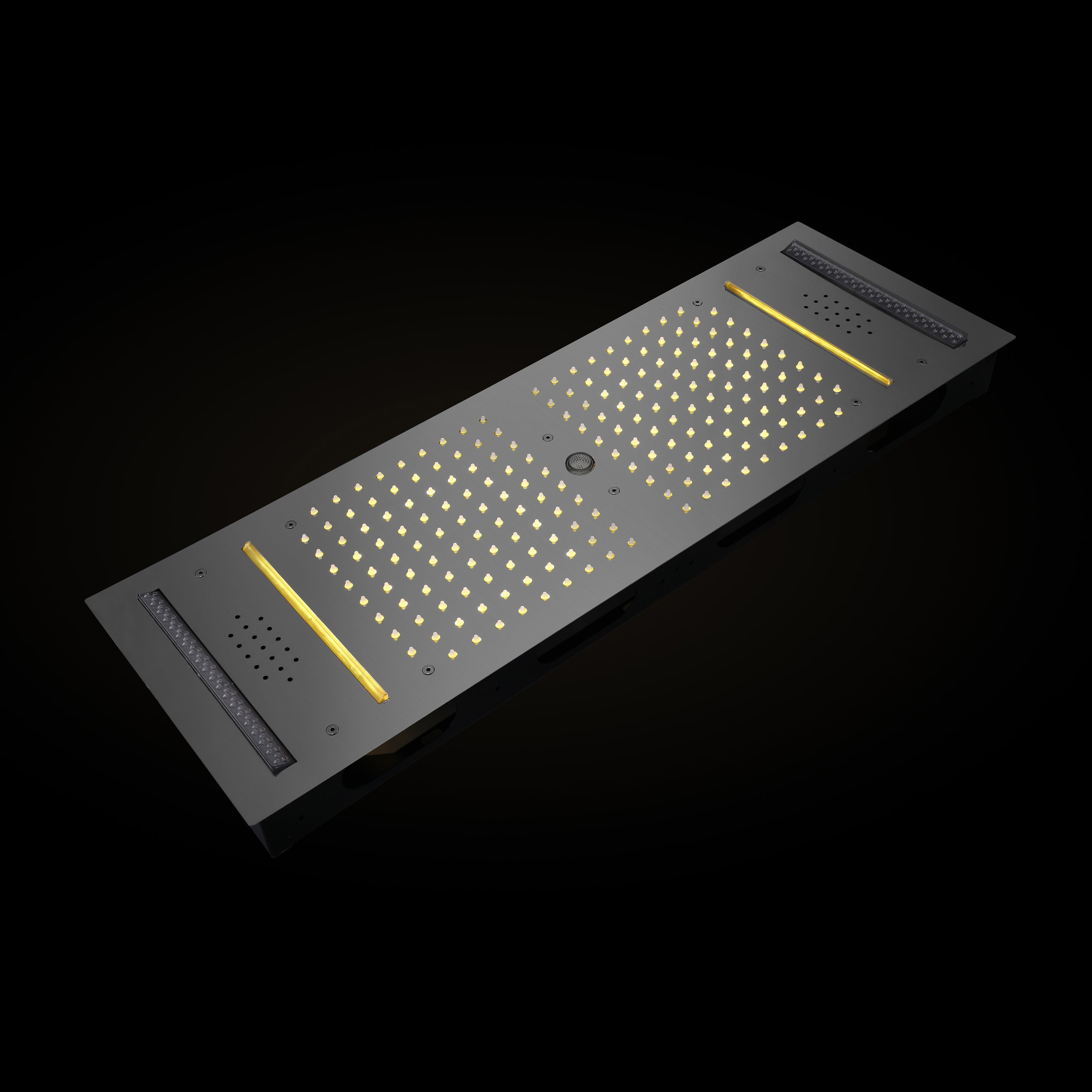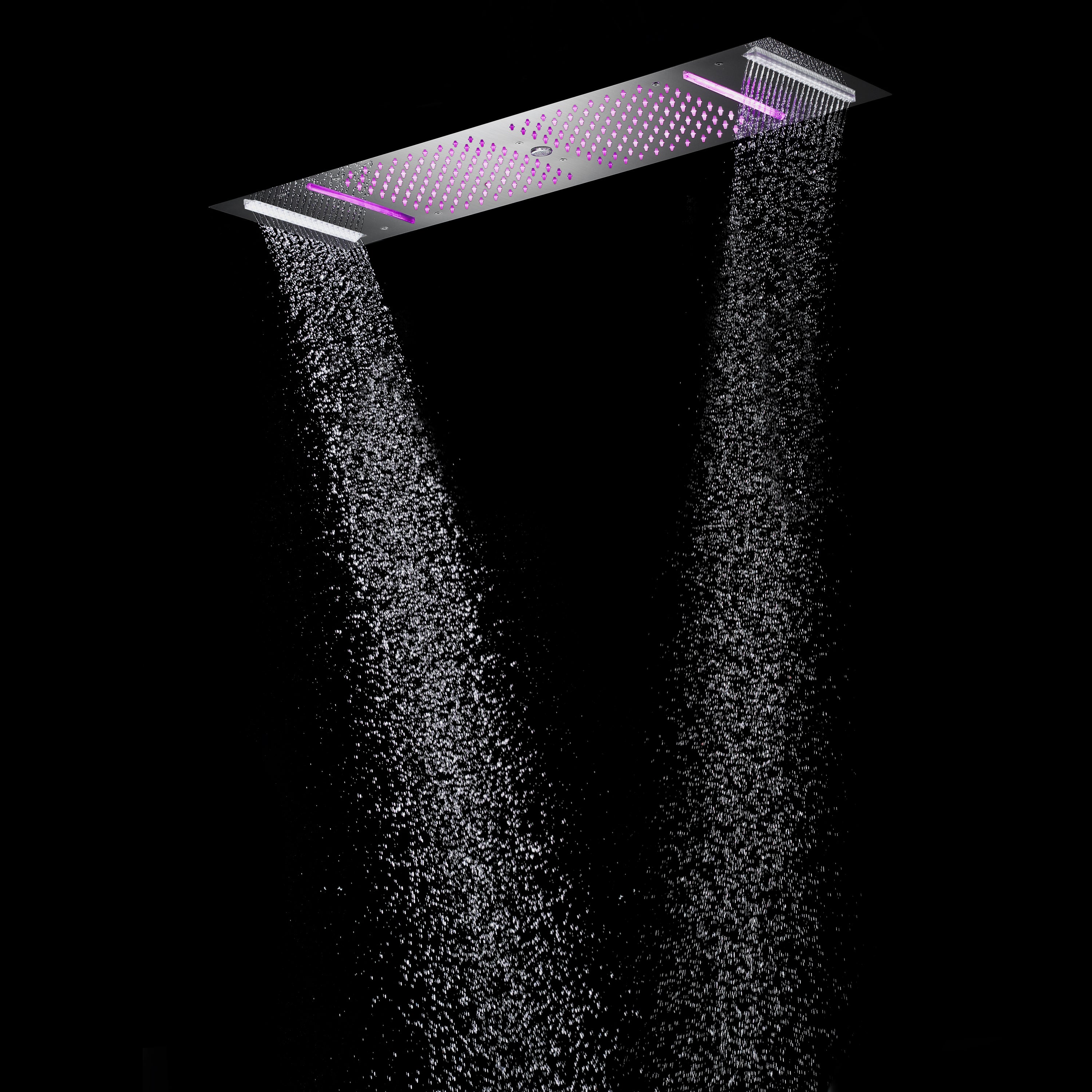 Brushed Nickel or brushed gold or matte black 36-Inch Rainfall Waterfall Water Column 4 functions Shower Head with Bluetooth Music and 64 LED Lights