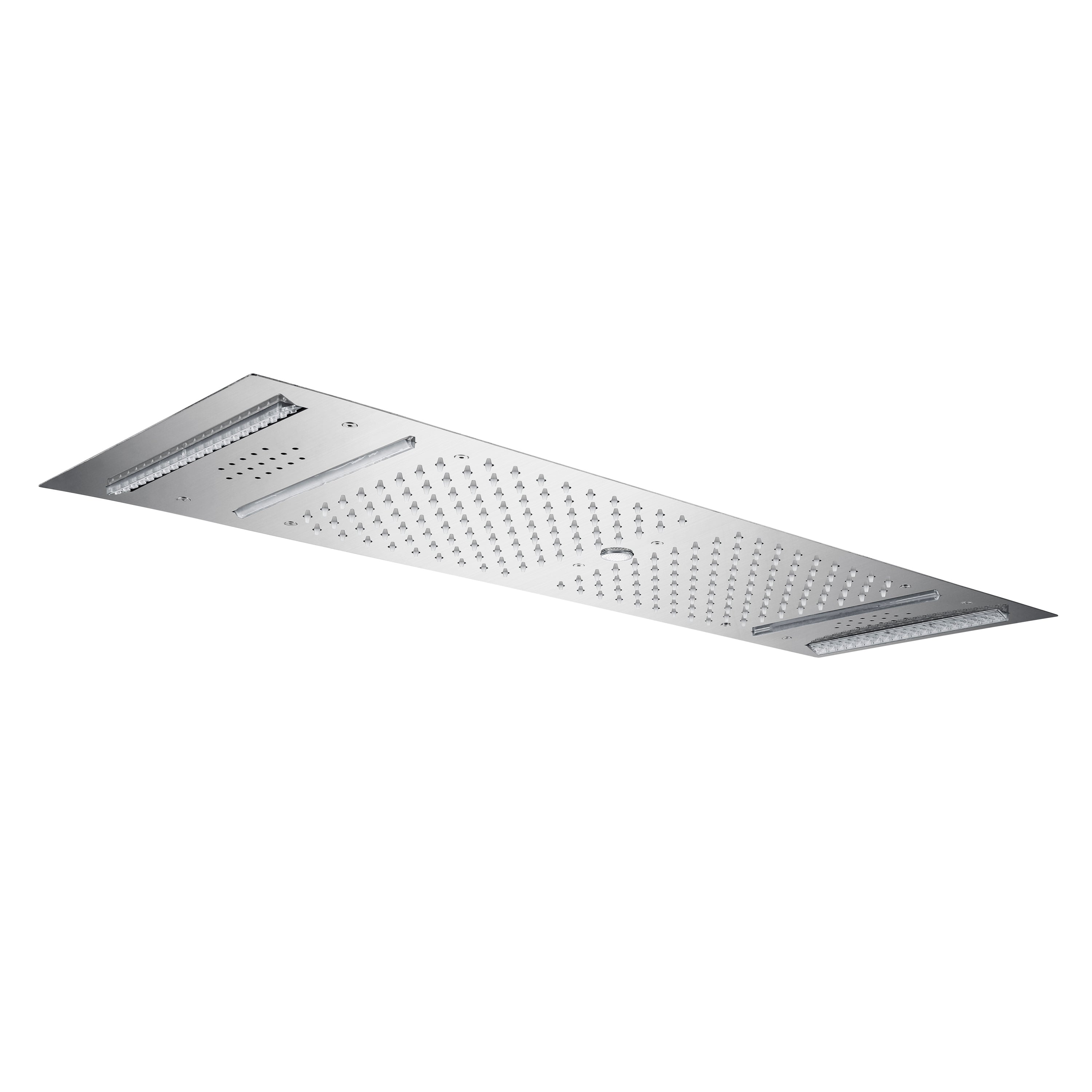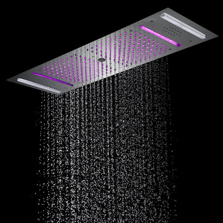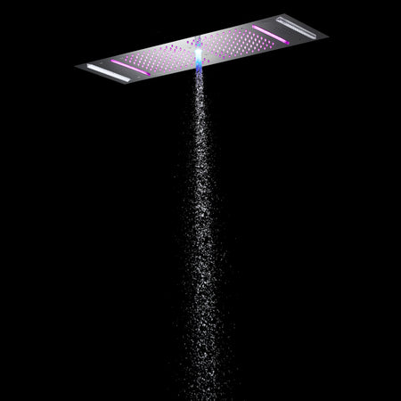 Immerse in Opulent Luxury: 4 functions Brushed Nickel Flush Mounted Stainless Steel Shower Head with Rainfall, Waterfall, Water Column, 64 LED Lights, Bluetooth Music, and Touch Panel Control