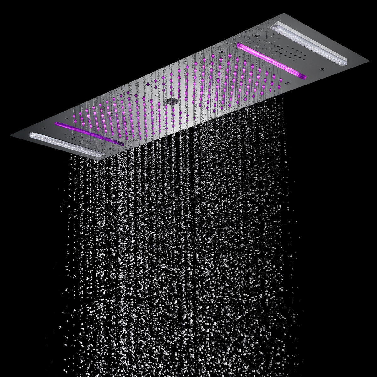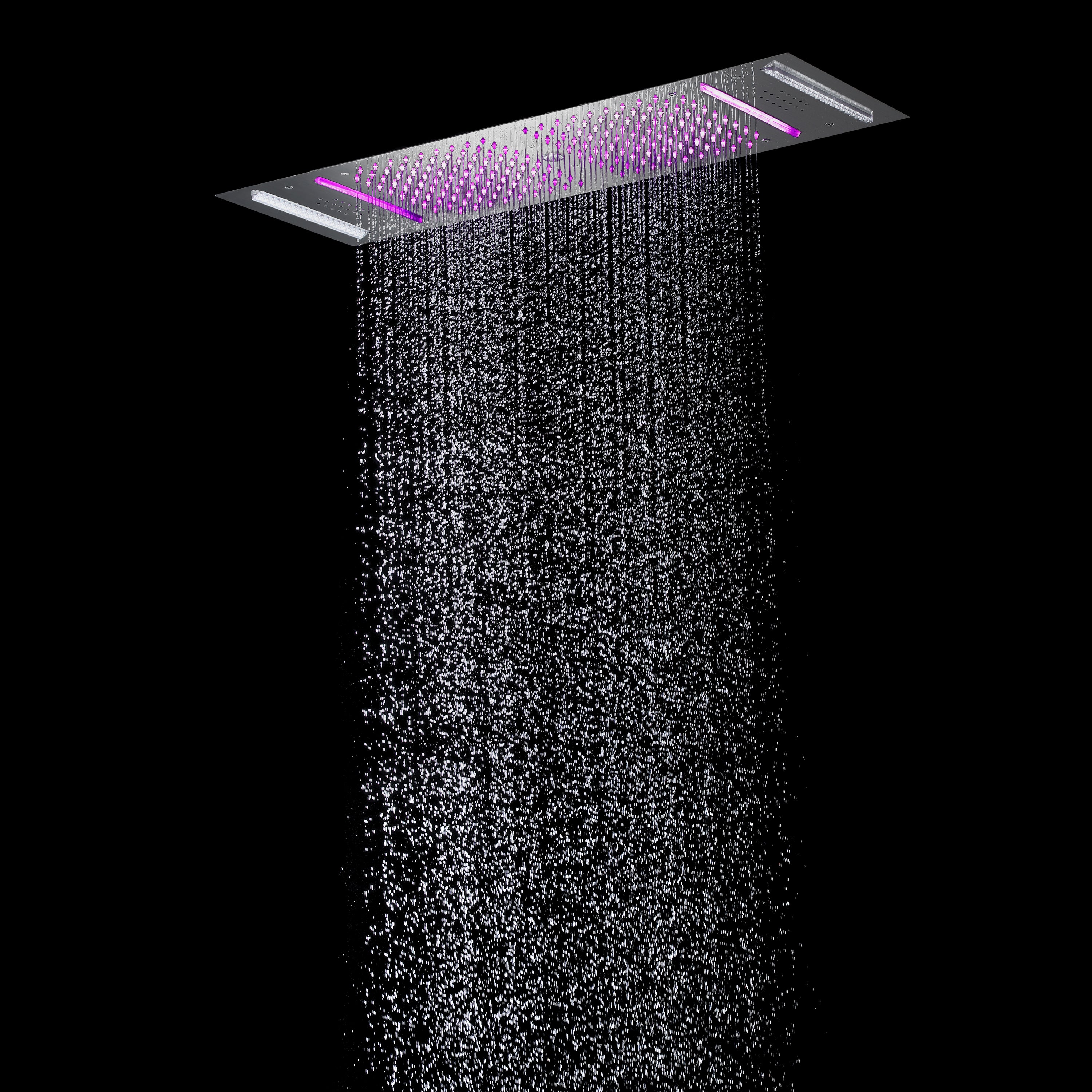 64 Color LED Light: Illuminate your shower with the mesmerizing display of 64 color LED lights. These lights are powered by a safe power source via a transformer, ensuring both vibrant colors and peace of mind. The LED lights create a captivating visual experience, enhancing the ambiance of your shower and transforming it into a tranquil oasis.